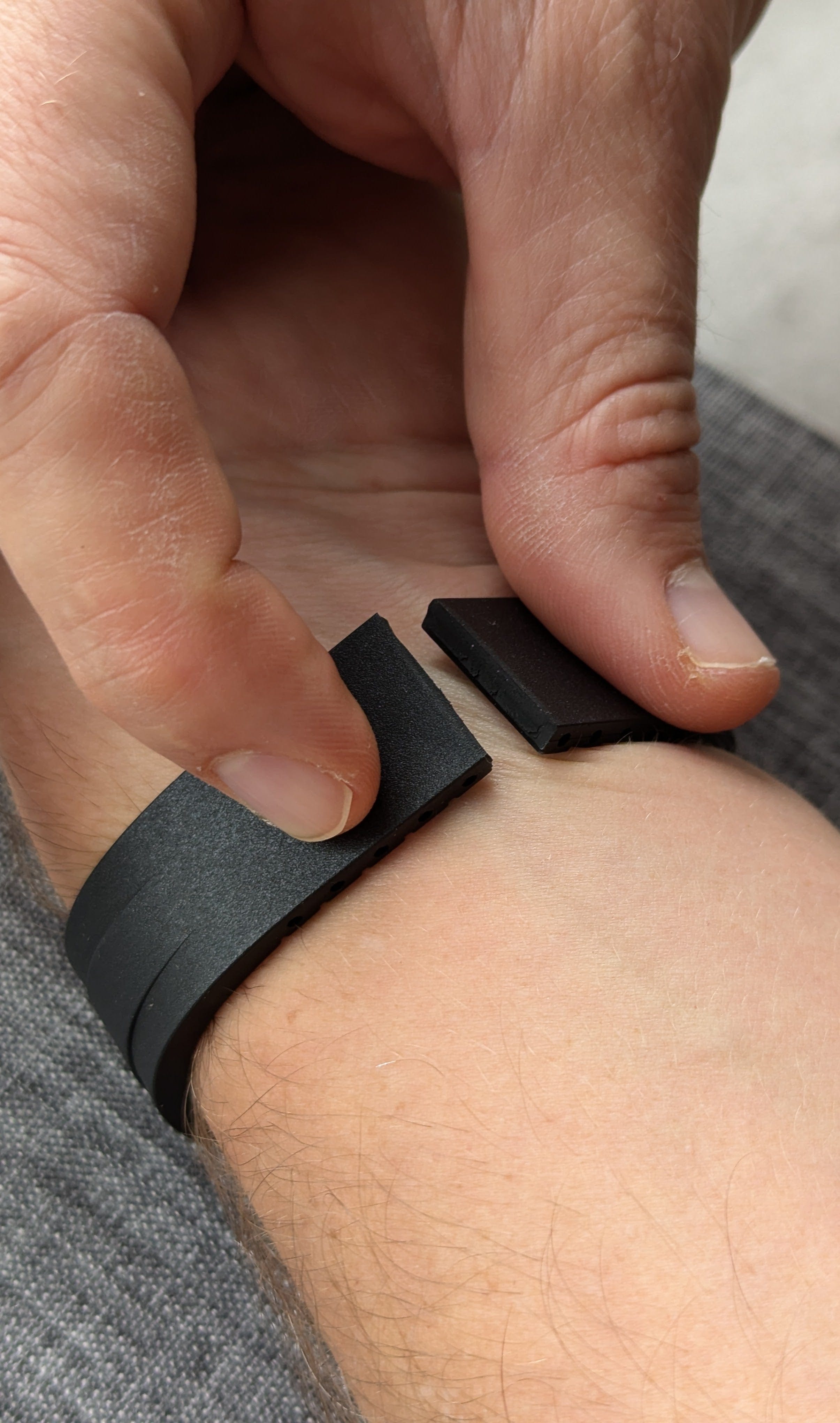 Using the image you see in the guide, you are working down to meeting the ends of the rubber so they touch in the centre of your wrist. Cut down so you have more than you need initially and then attach the clasp and test the fit, then adjust as necessary. Every customer will require a different fit, loose or tight, so work to a fit that works for your wrist