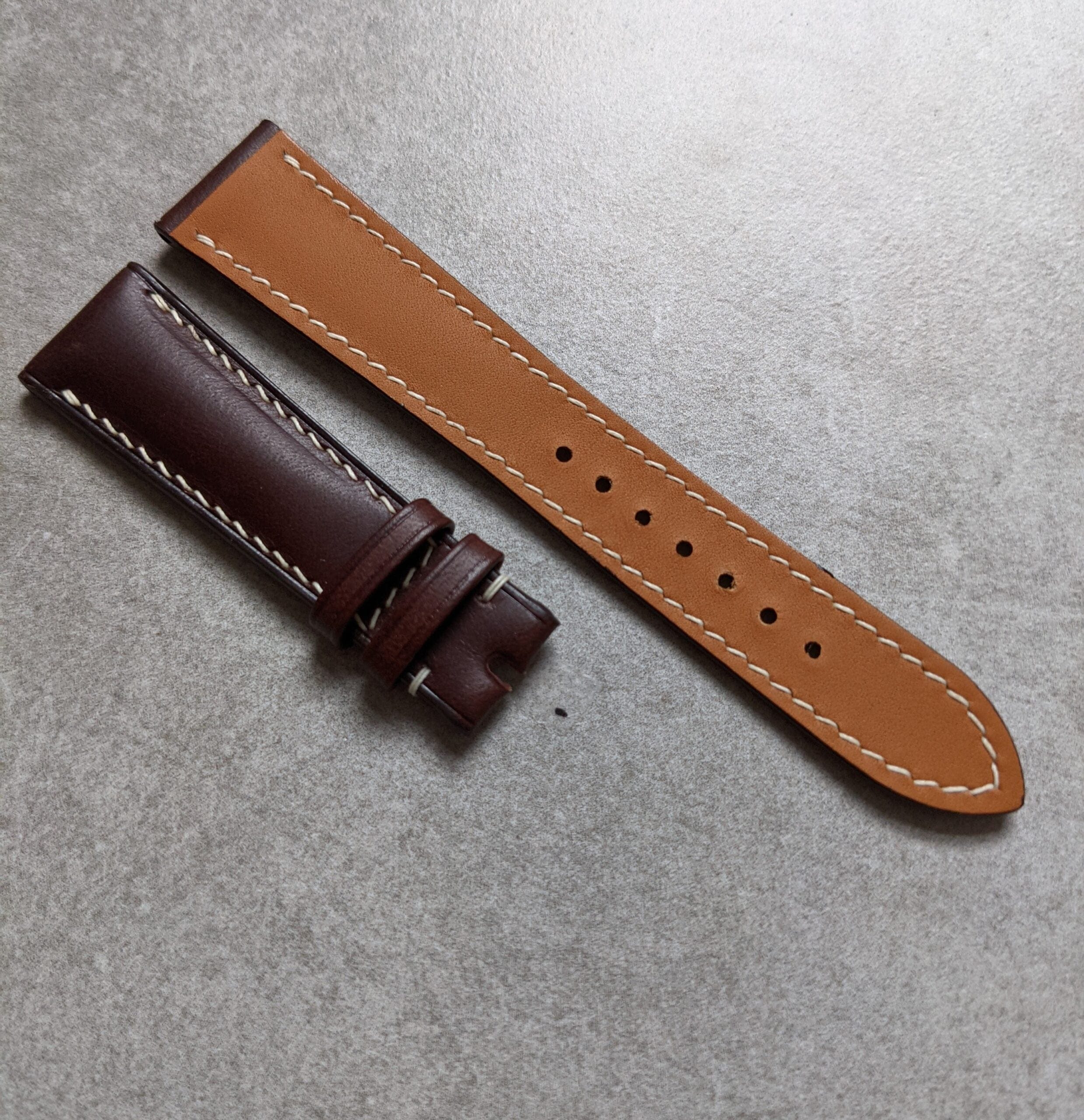 Each leather watch strap is meticulously handmade with traditional techniques and saddle stitched for durability and a visually appealing finish