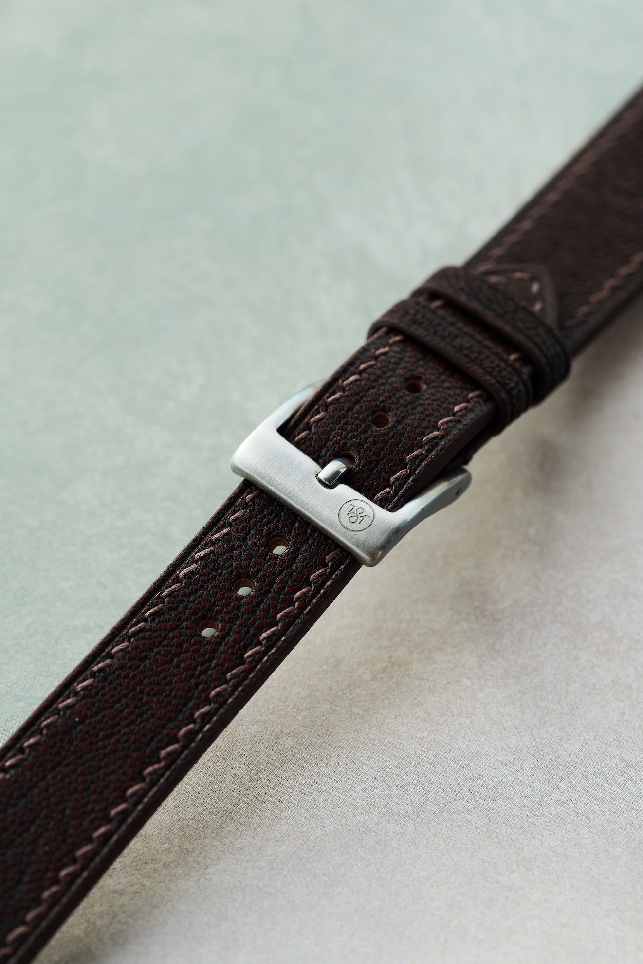 Each leather watch strap is meticulously handmade with traditional techniques and saddle stitched for durability and a visually appealing finish