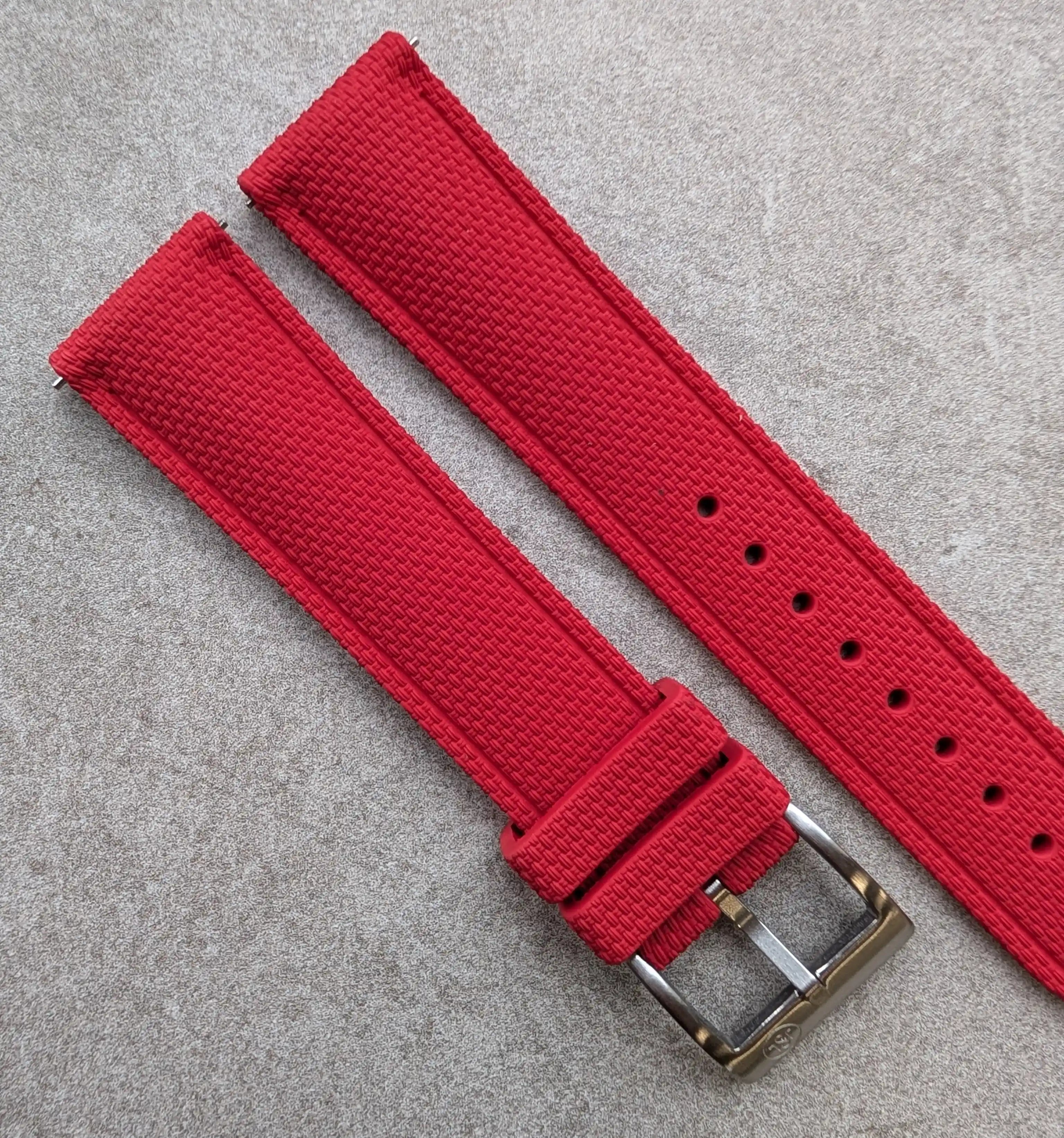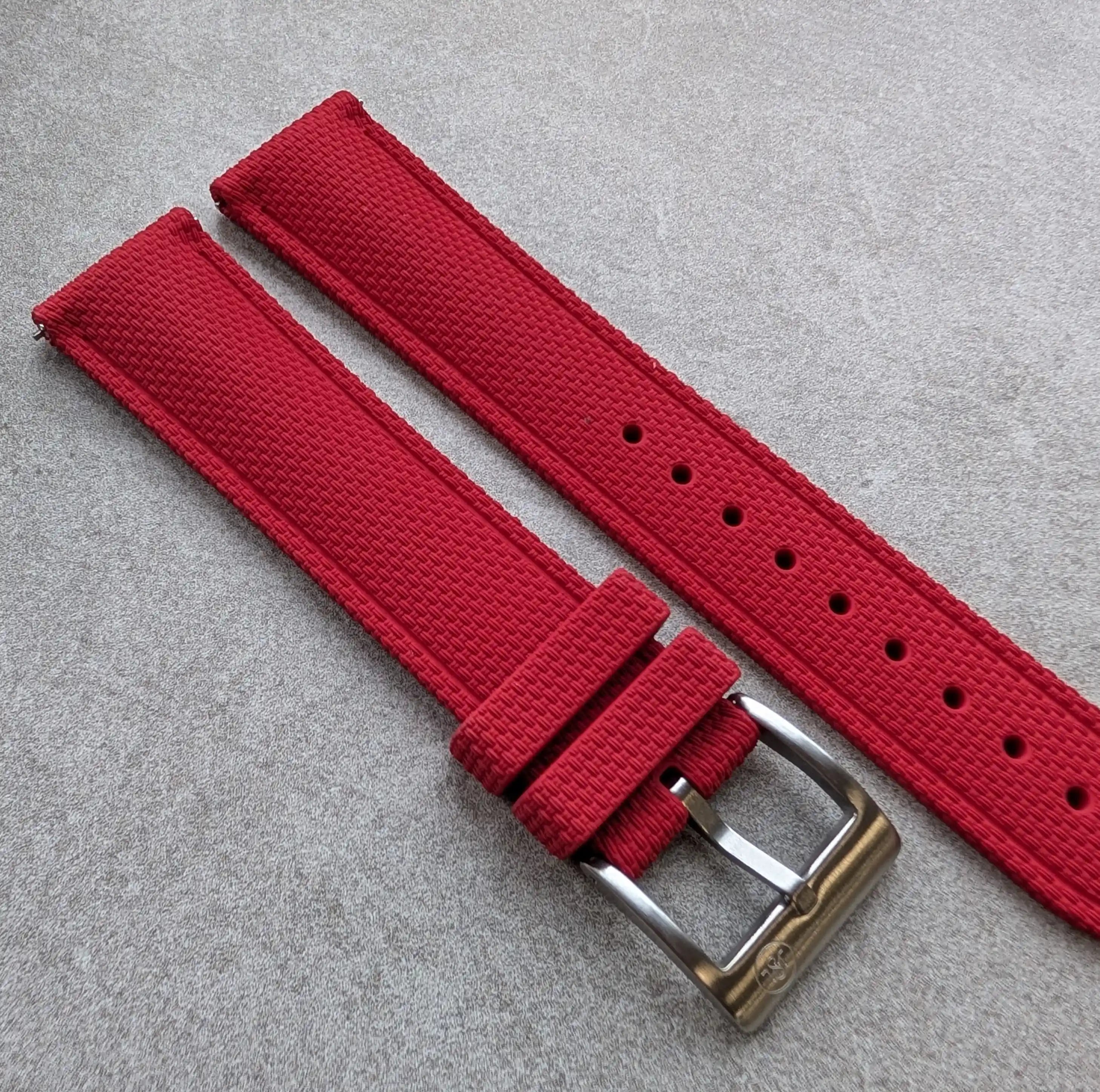 Our FKM rubber watch straps are crafted using only the highest-grade fluoroelastomer compounds, known for their exceptional durability, comfort, and resistance to heat, chemicals, and UV exposure.