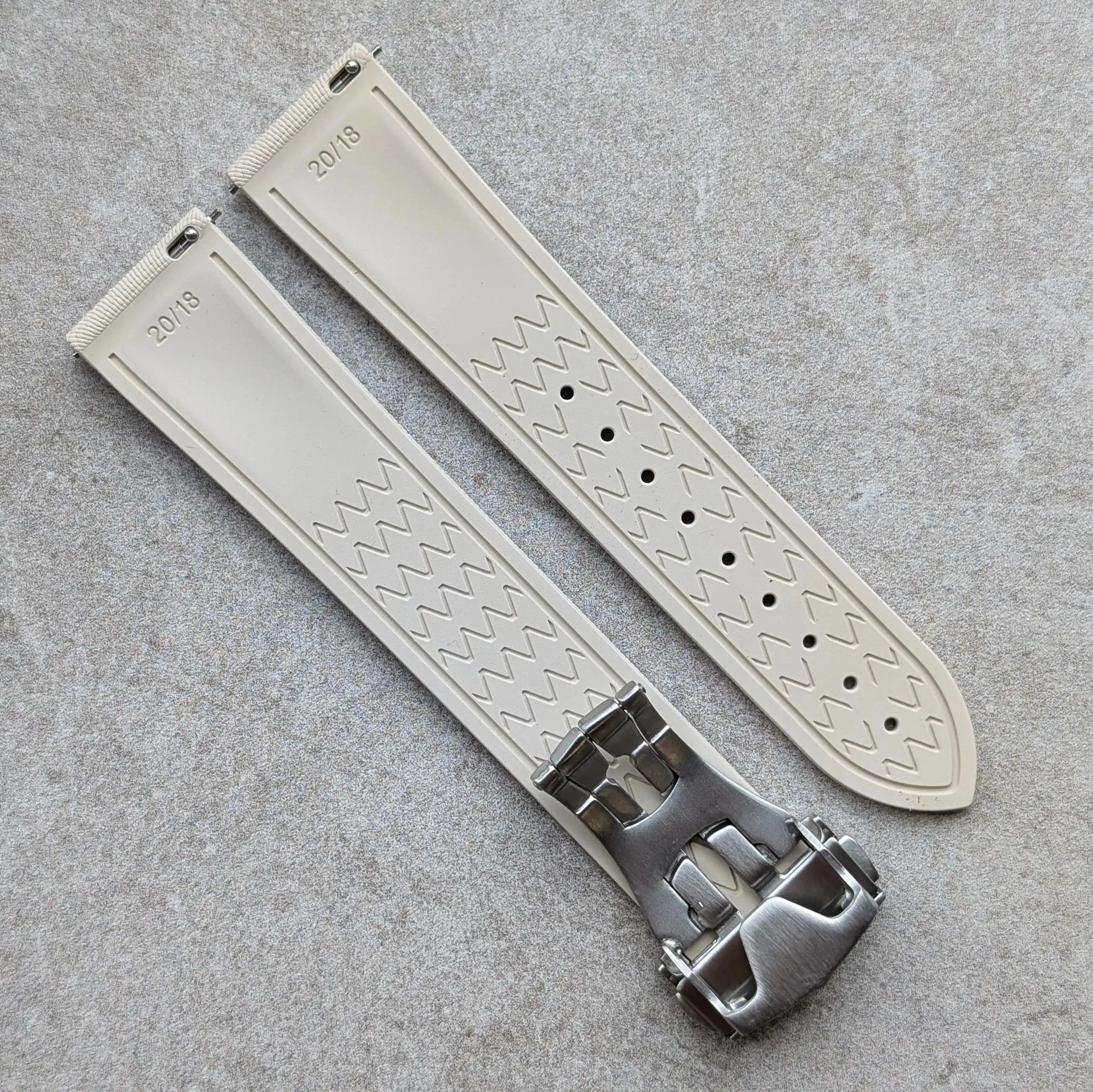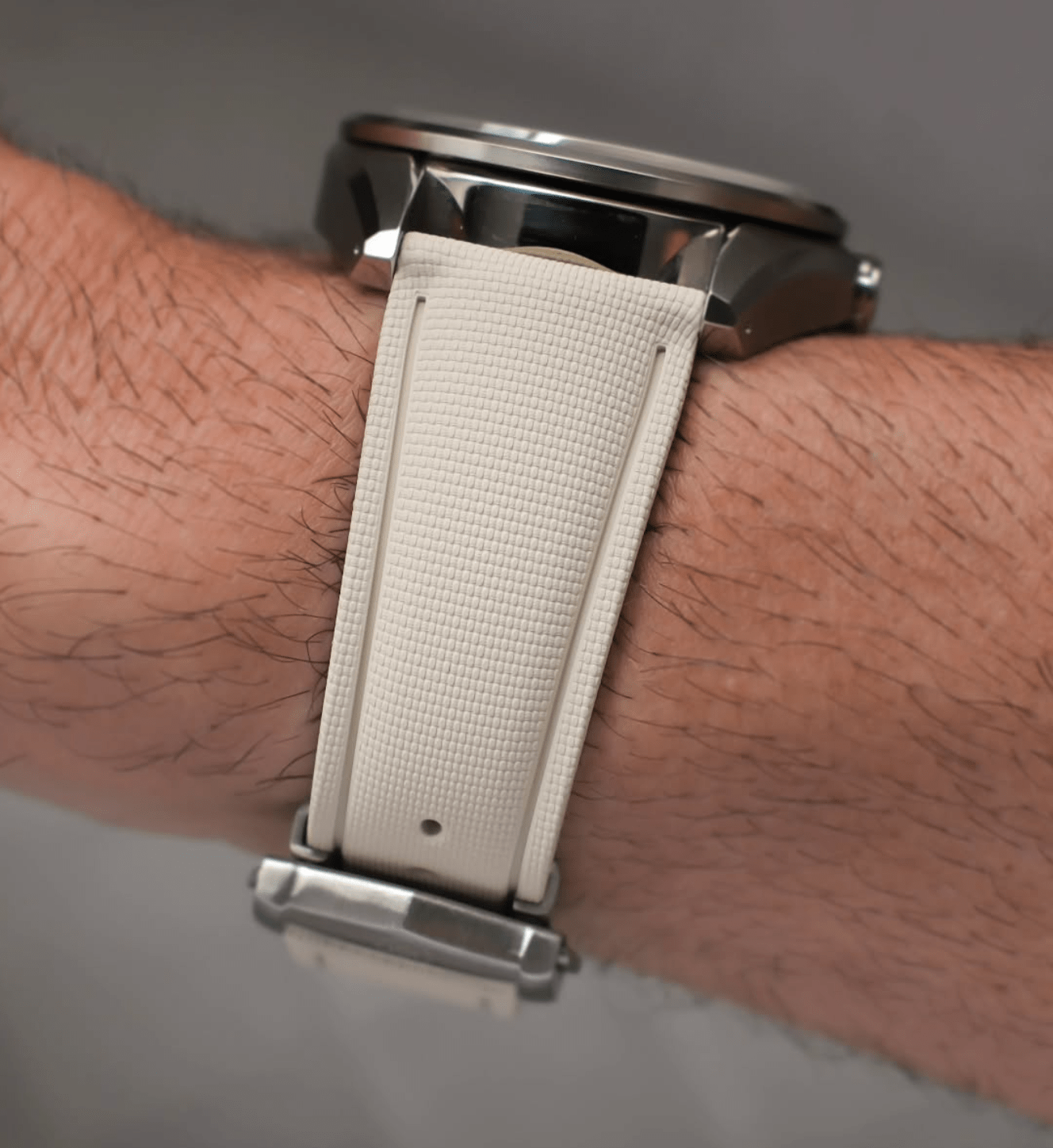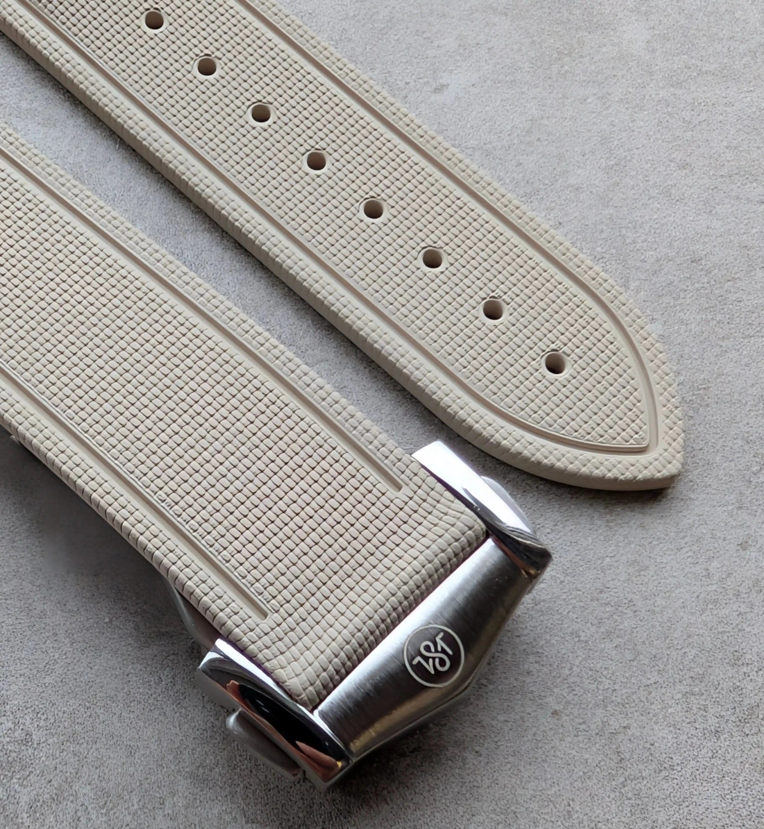 Our FKM rubber watch straps are crafted using only the highest-grade fluoroelastomer compounds, known for their exceptional durability, comfort, and resistance to heat, chemicals, and UV exposure.