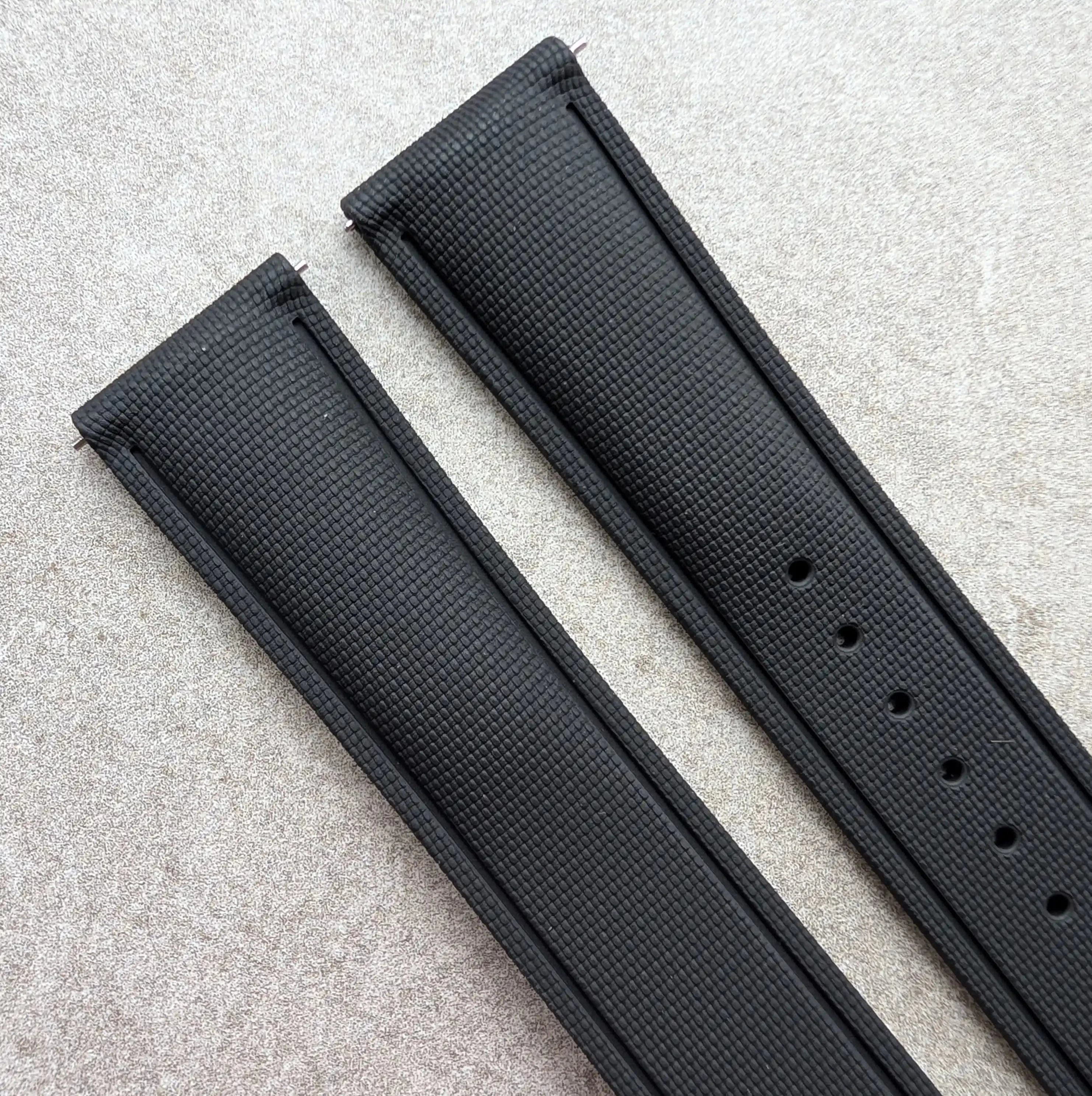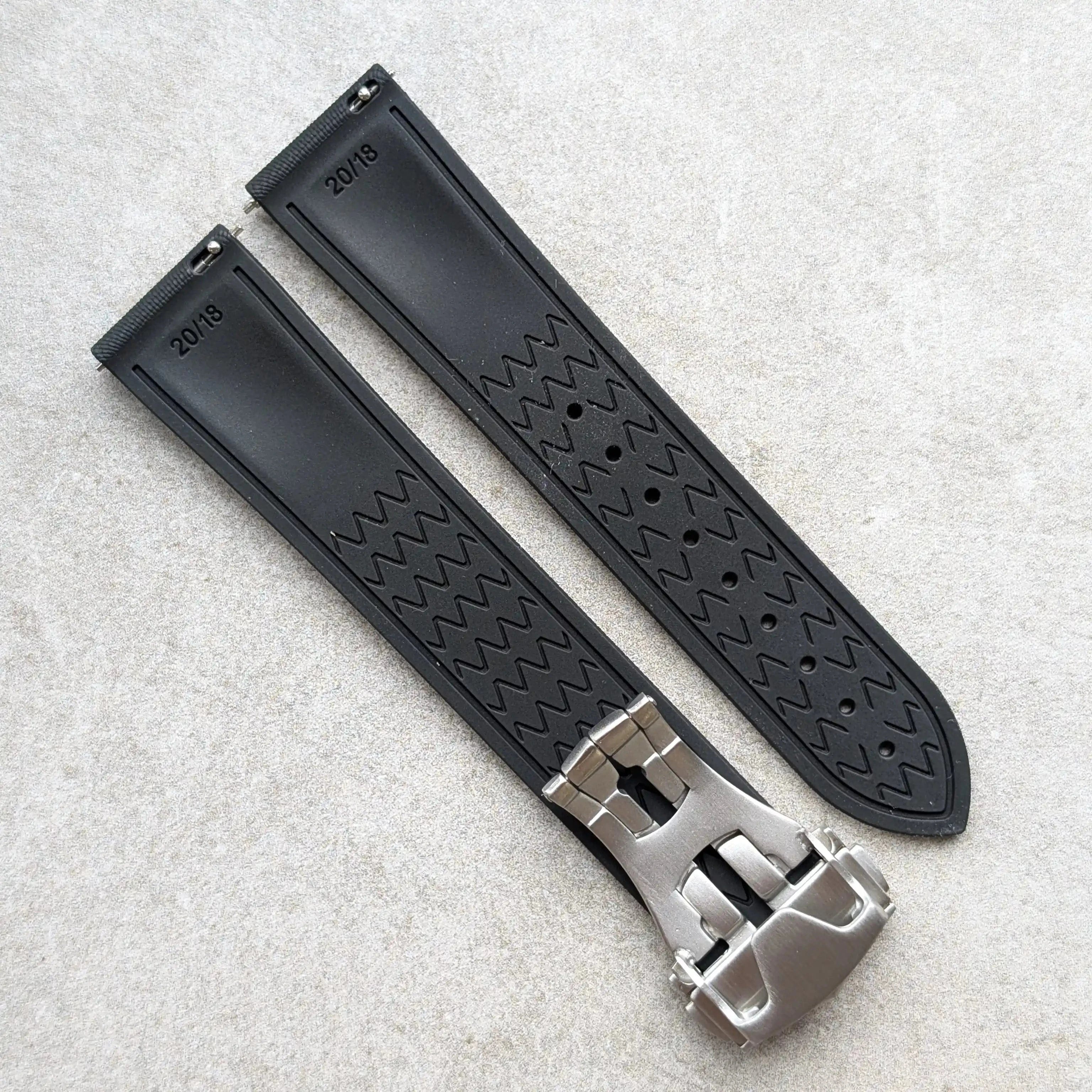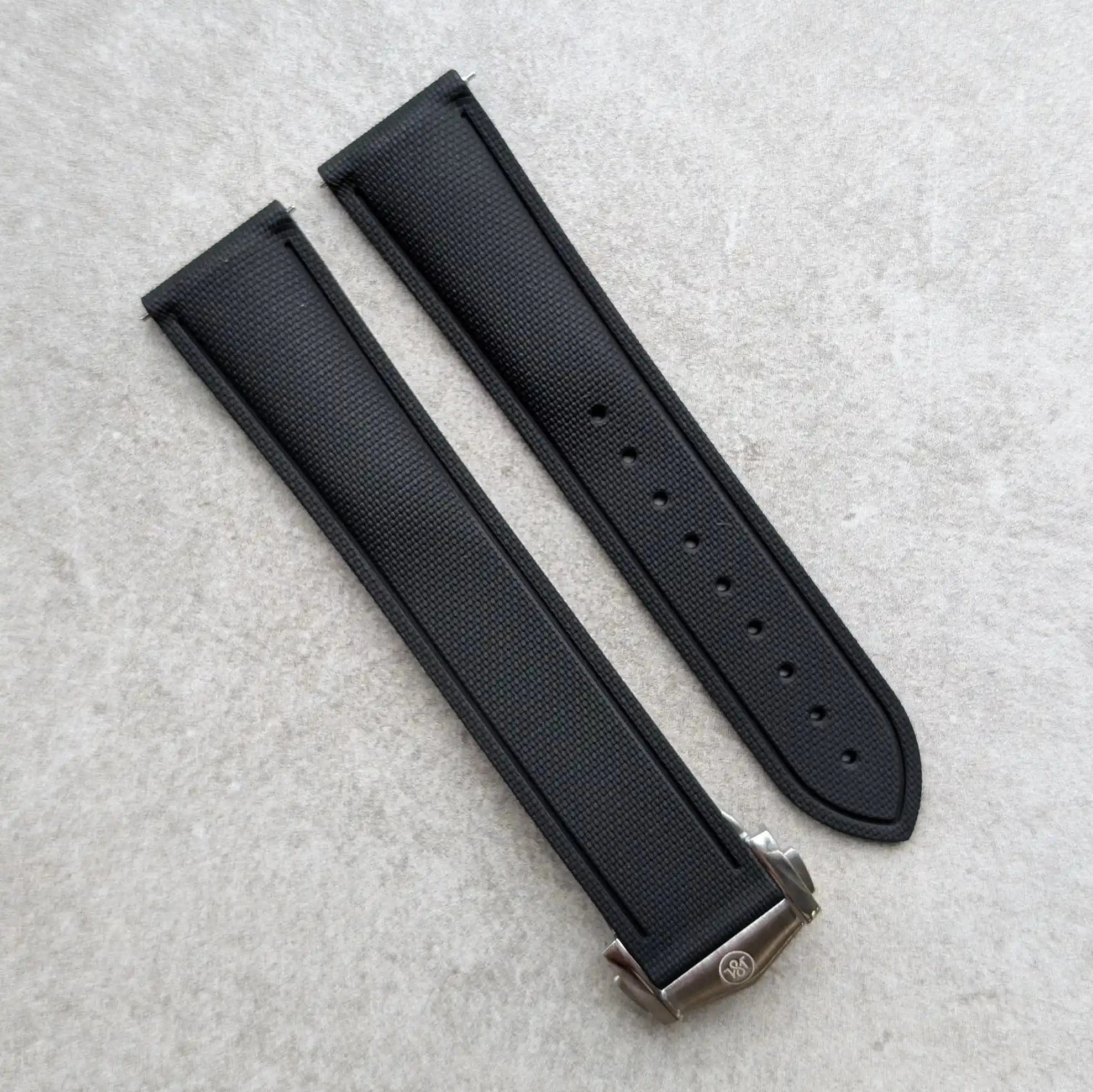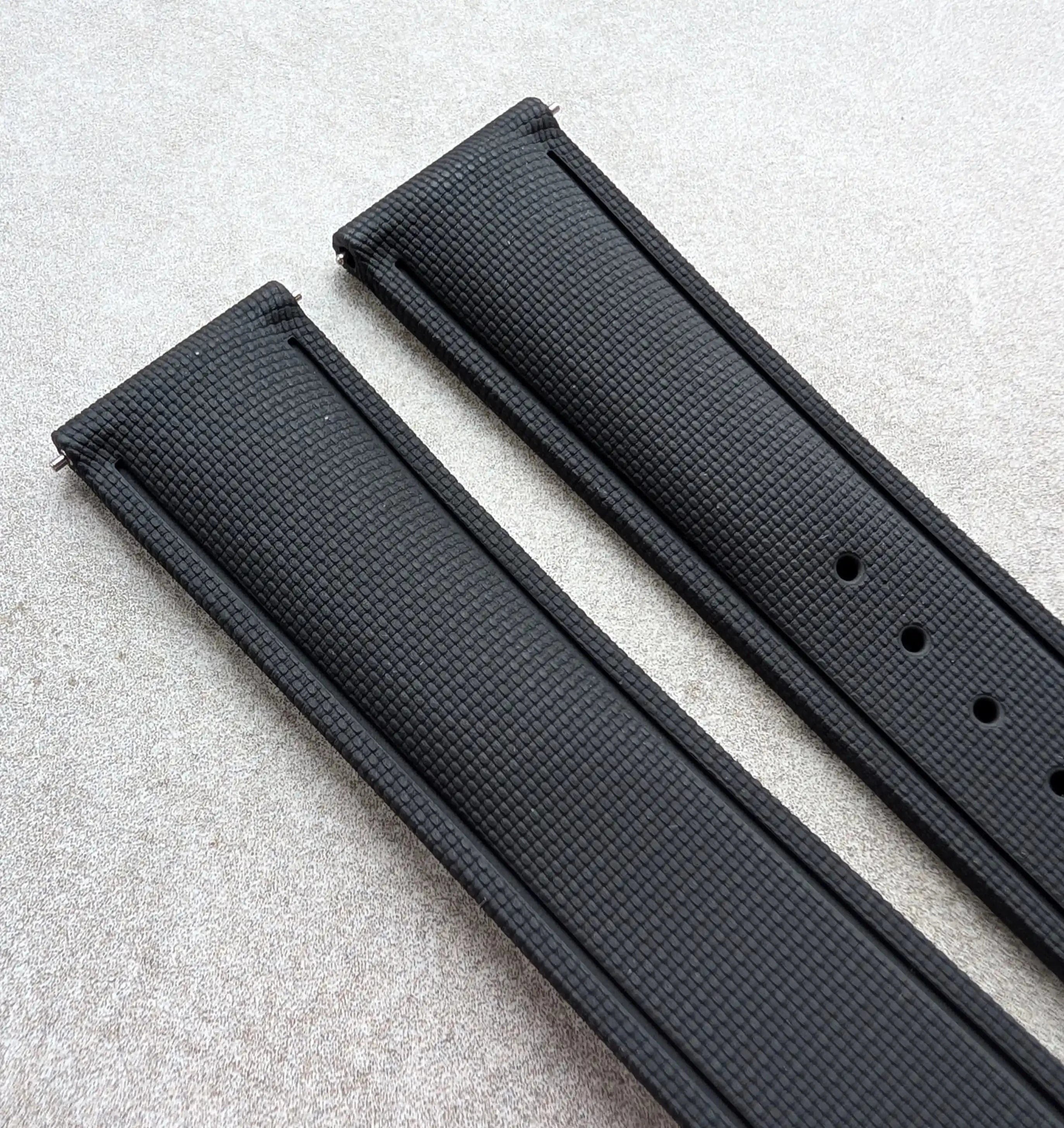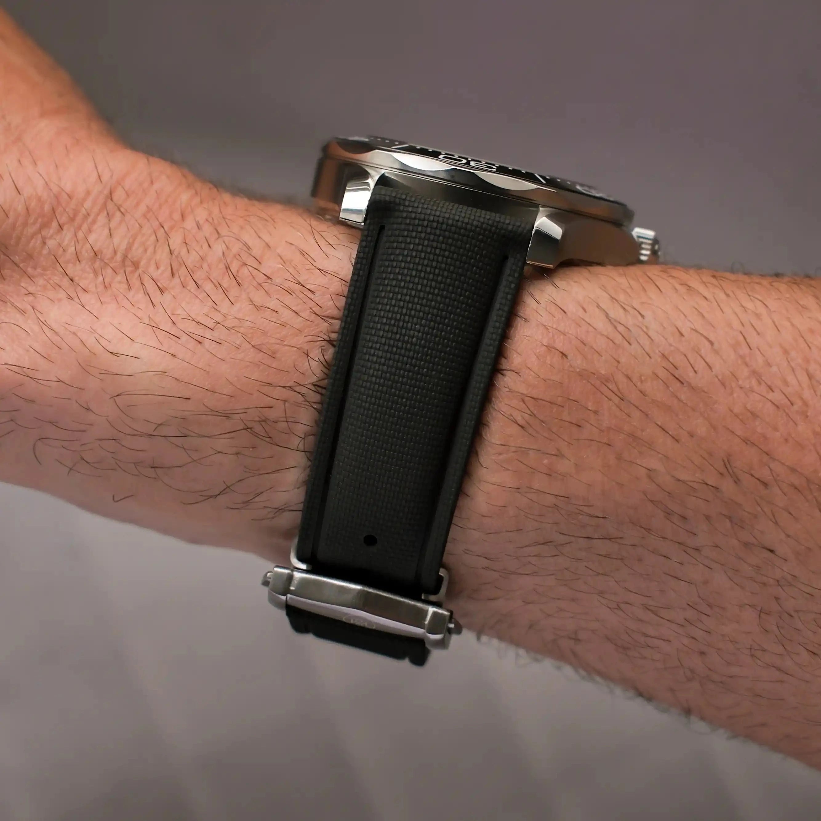 Our FKM rubber watch straps are crafted using only the highest-grade fluoroelastomer compounds, known for their exceptional durability, comfort, and resistance to heat, chemicals, and UV exposure.