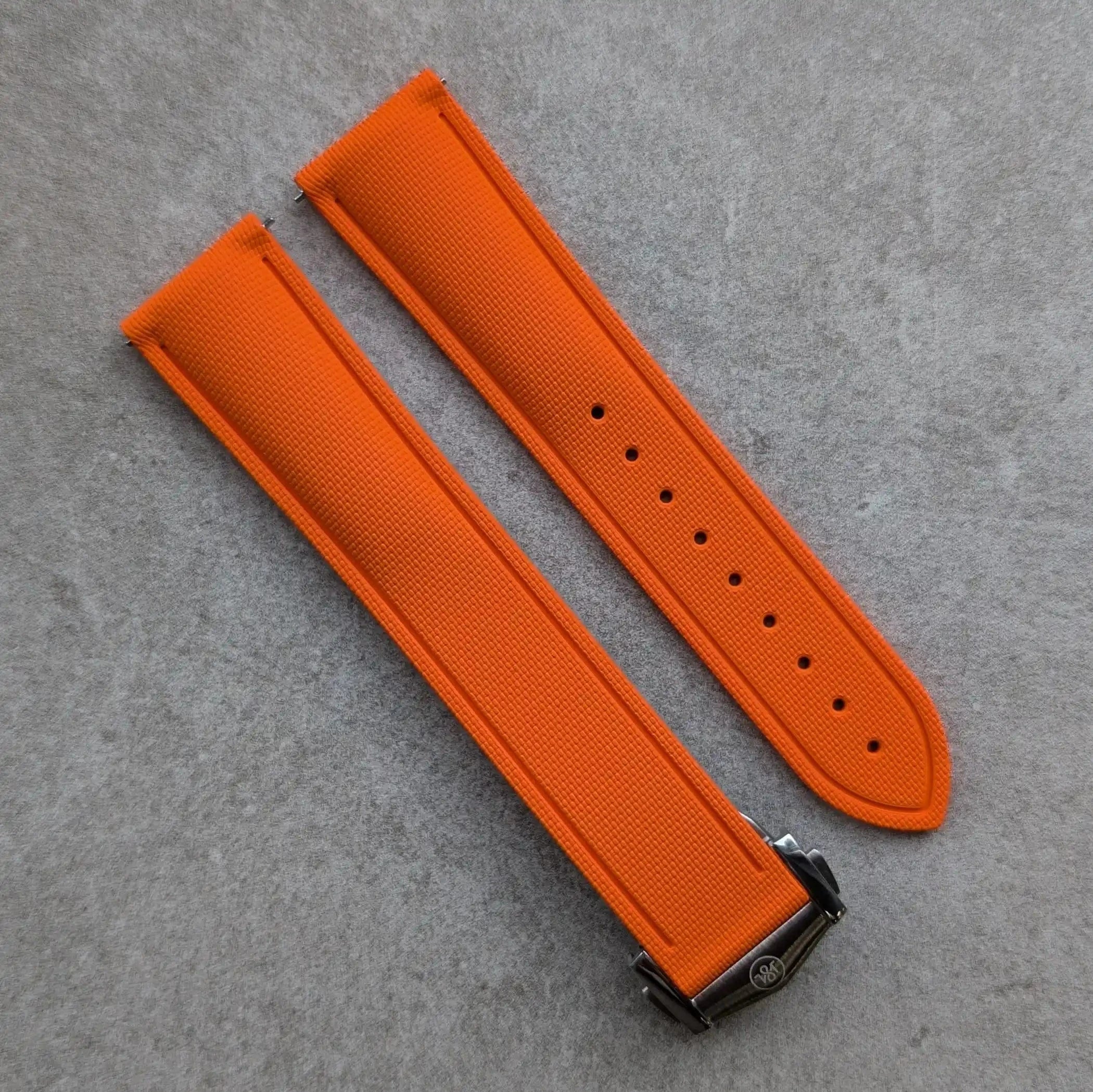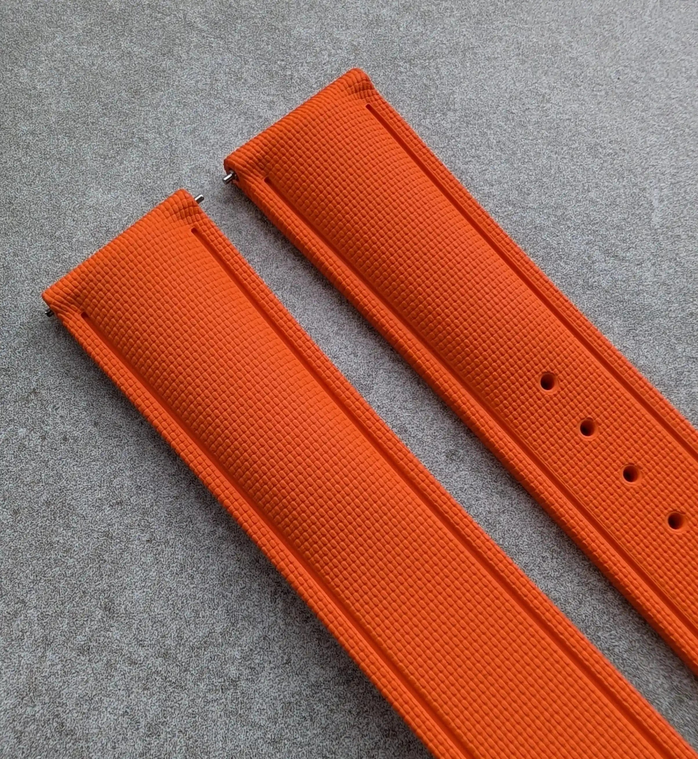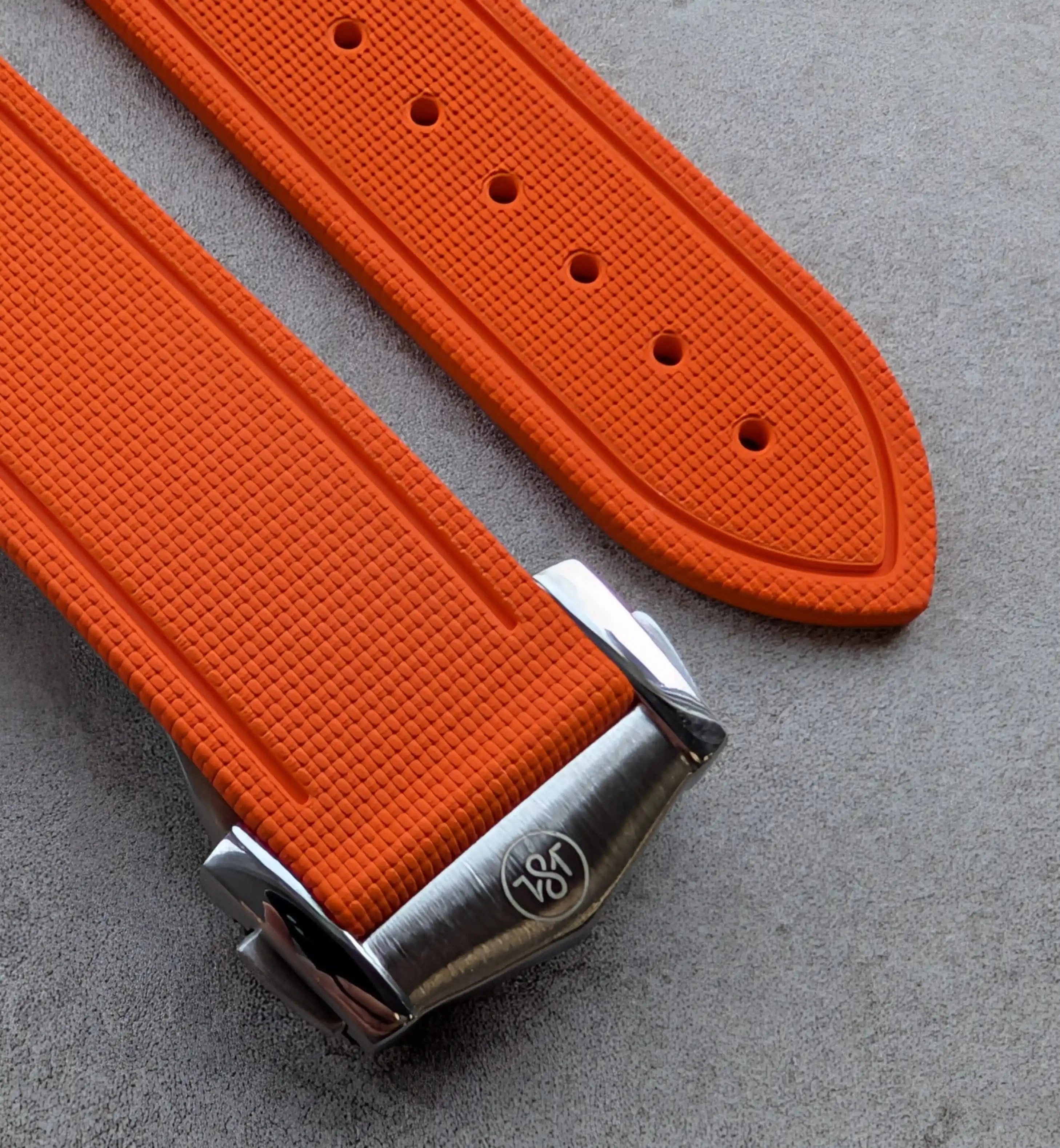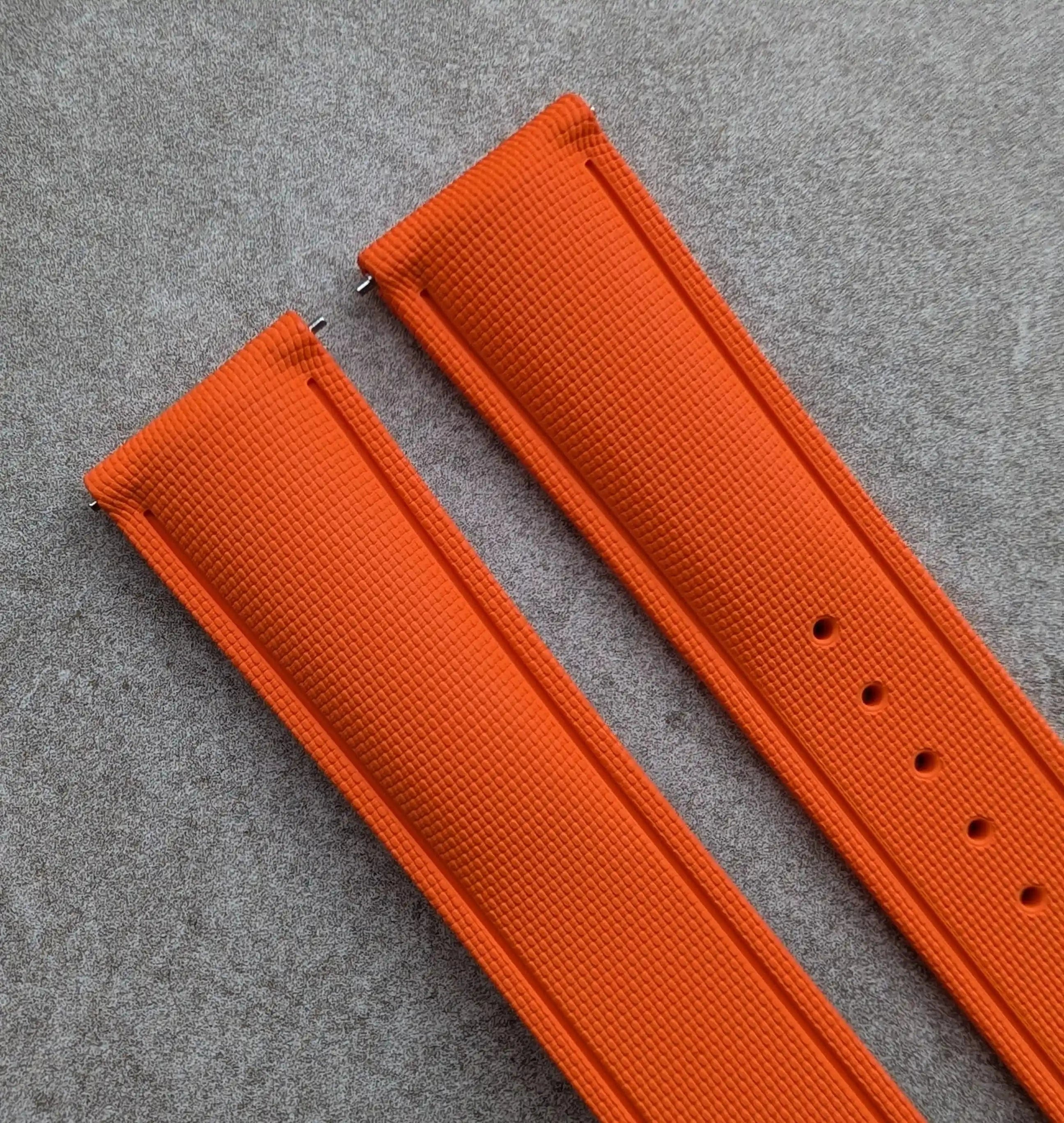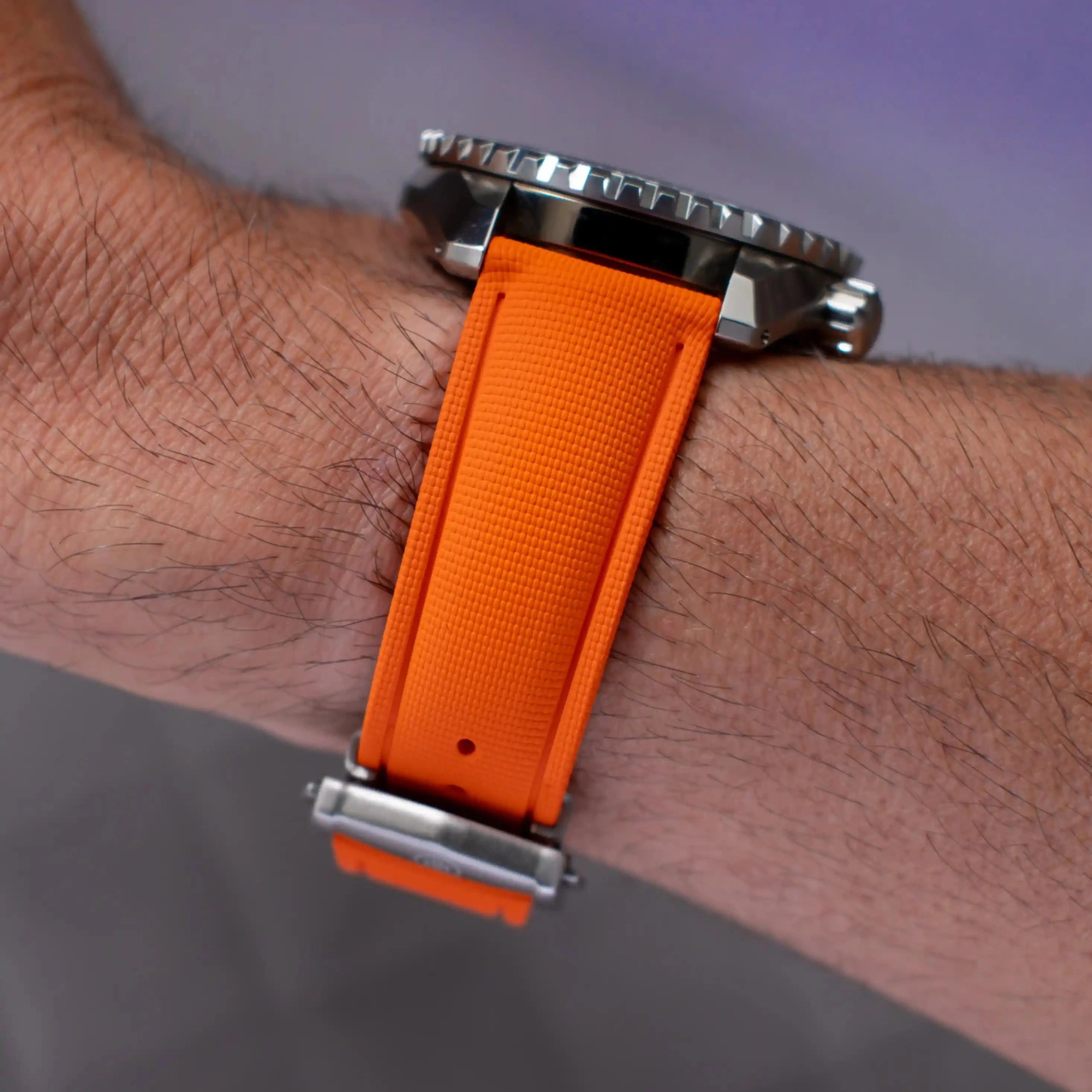Our FKM rubber watch straps are crafted using only the highest-grade fluoroelastomer compounds, known for their exceptional durability, comfort, and resistance to heat, chemicals, and UV exposure.
