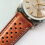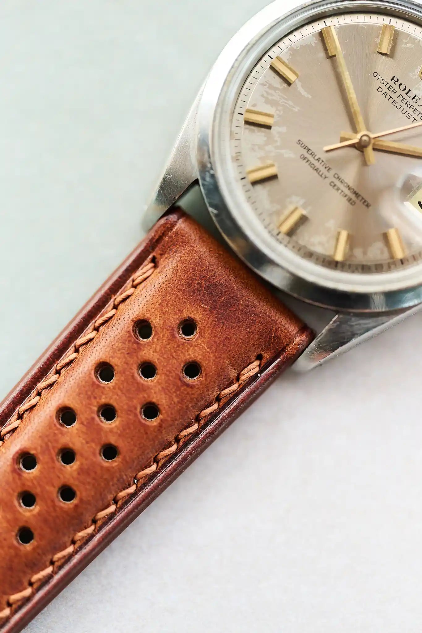 Each leather watch strap is meticulously handmade with traditional techniques and saddle stitched for durability and a visually appealing finish
