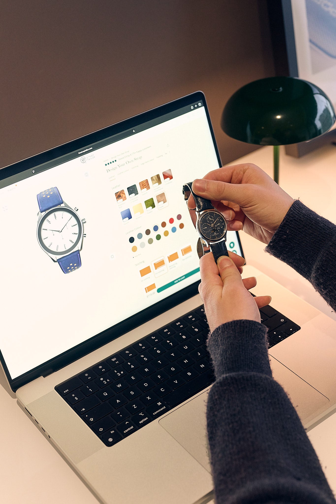 The tool gives a realistic render of your strap - but it's a mock-up not a photograph. Final straps may vary in grain, stitching detail, and tone due to the natural characteristics of leather and hand finishing processes. To help in your design - explore our made to order range to get an idea of what leathers look like in real life