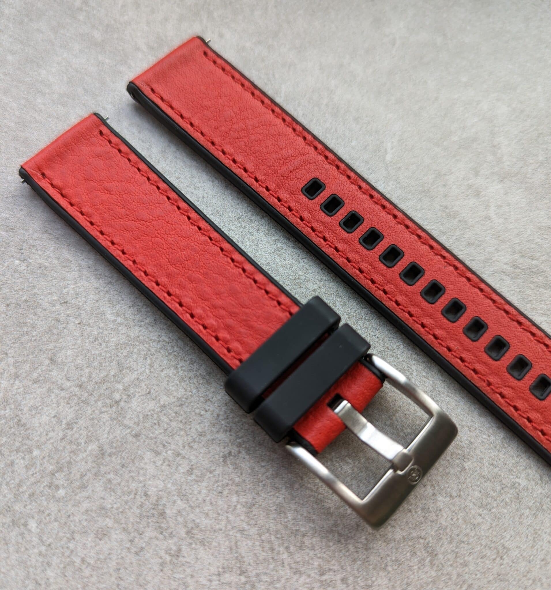 Our FKM rubber watch straps are crafted using only the highest-grade fluoroelastomer compounds, known for their exceptional durability, comfort, and resistance to heat, chemicals, and UV exposure.