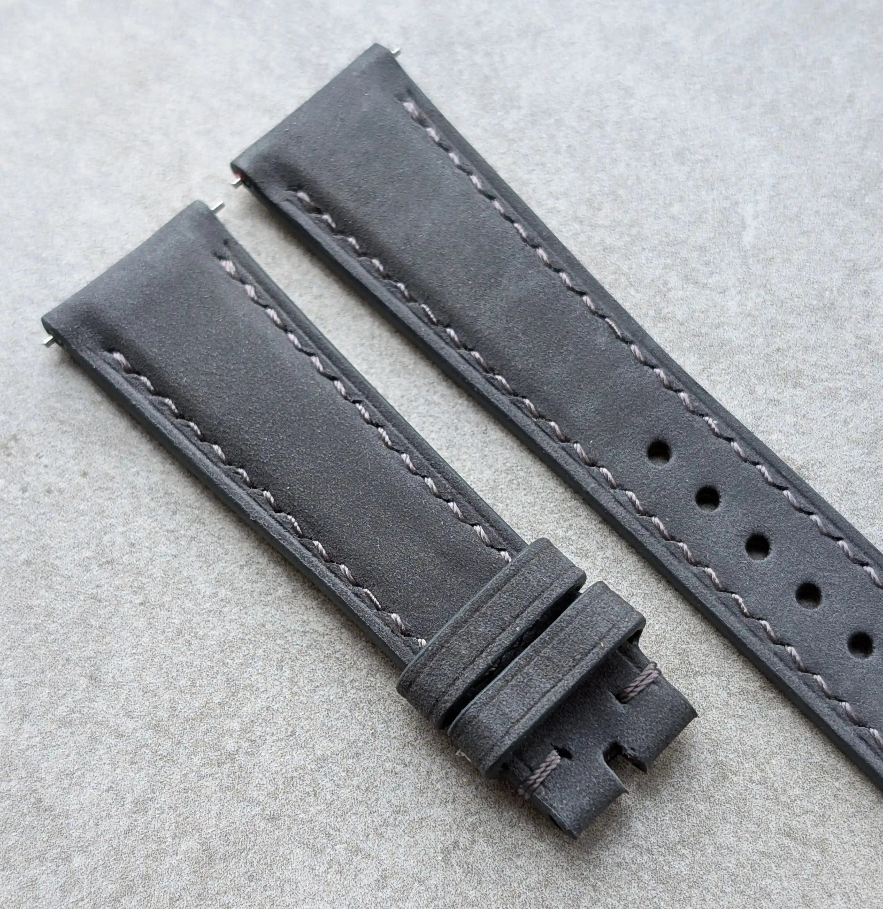 Please note that nubuck & suede is less durable than calfskin. We recommend that suede straps are worn in rotation and not daily. They do not have the same durability as a calfskin does.