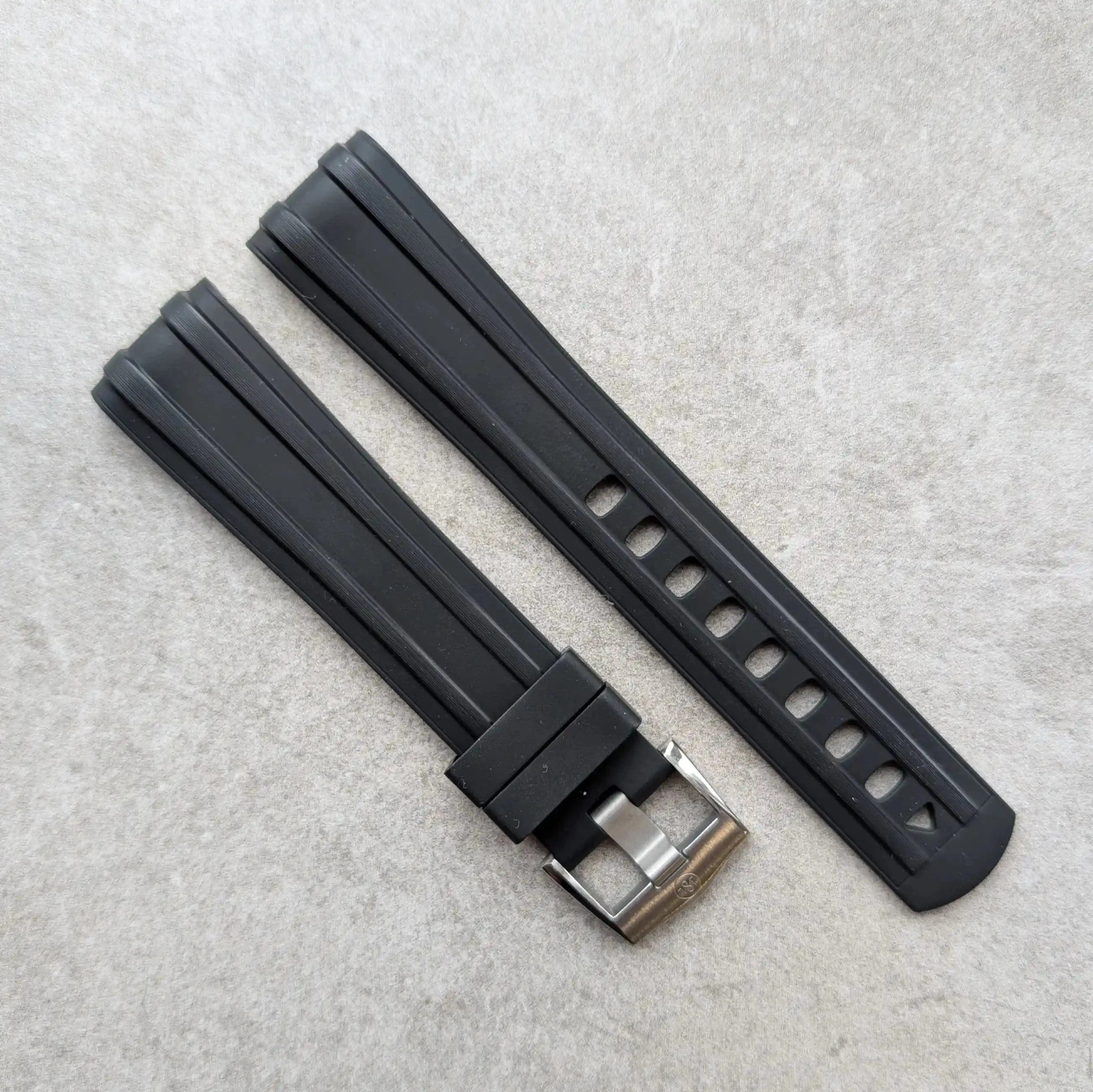 Our FKM rubber watch straps are crafted using only the highest-grade fluoroelastomer compounds, known for their exceptional durability, comfort, and resistance to heat, chemicals, and UV exposure.