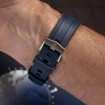 Our FKM rubber watch straps are crafted using only the highest-grade fluoroelastomer compounds, known for their exceptional durability, comfort, and resistance to heat, chemicals, and UV exposure.
