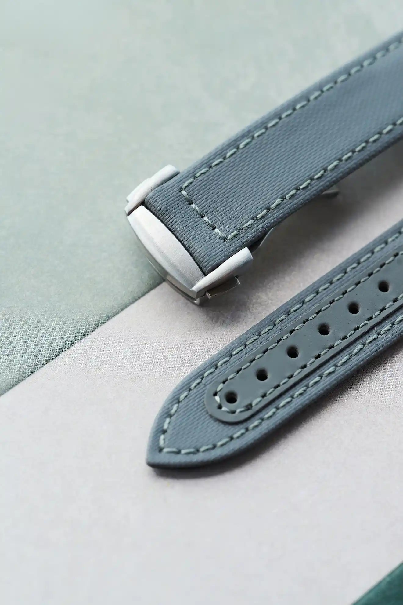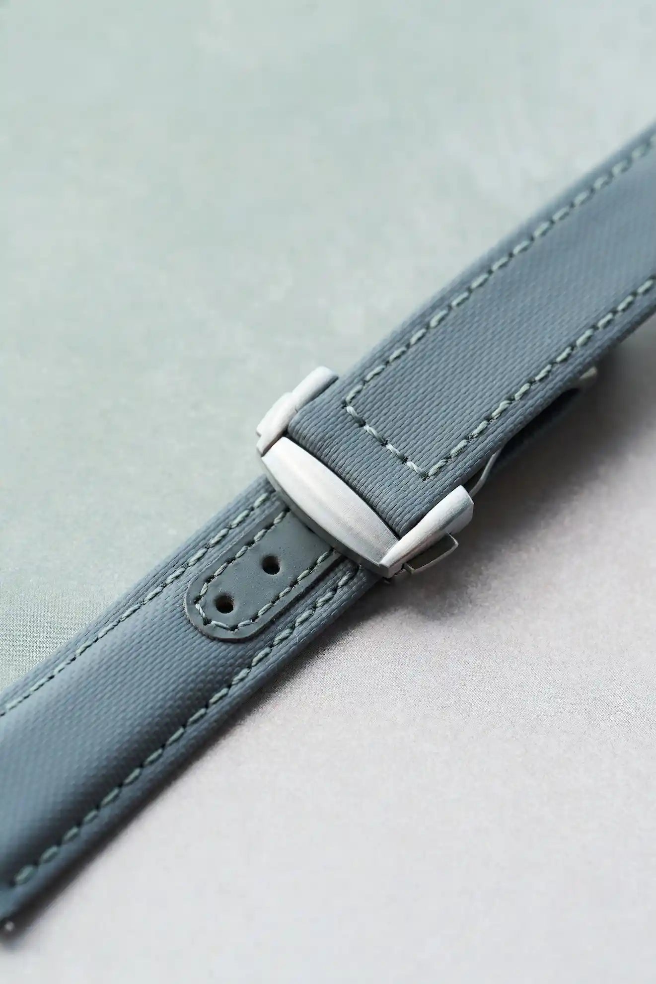 Omega-Style Deployant Sailcloth Watch Strap - Grey
