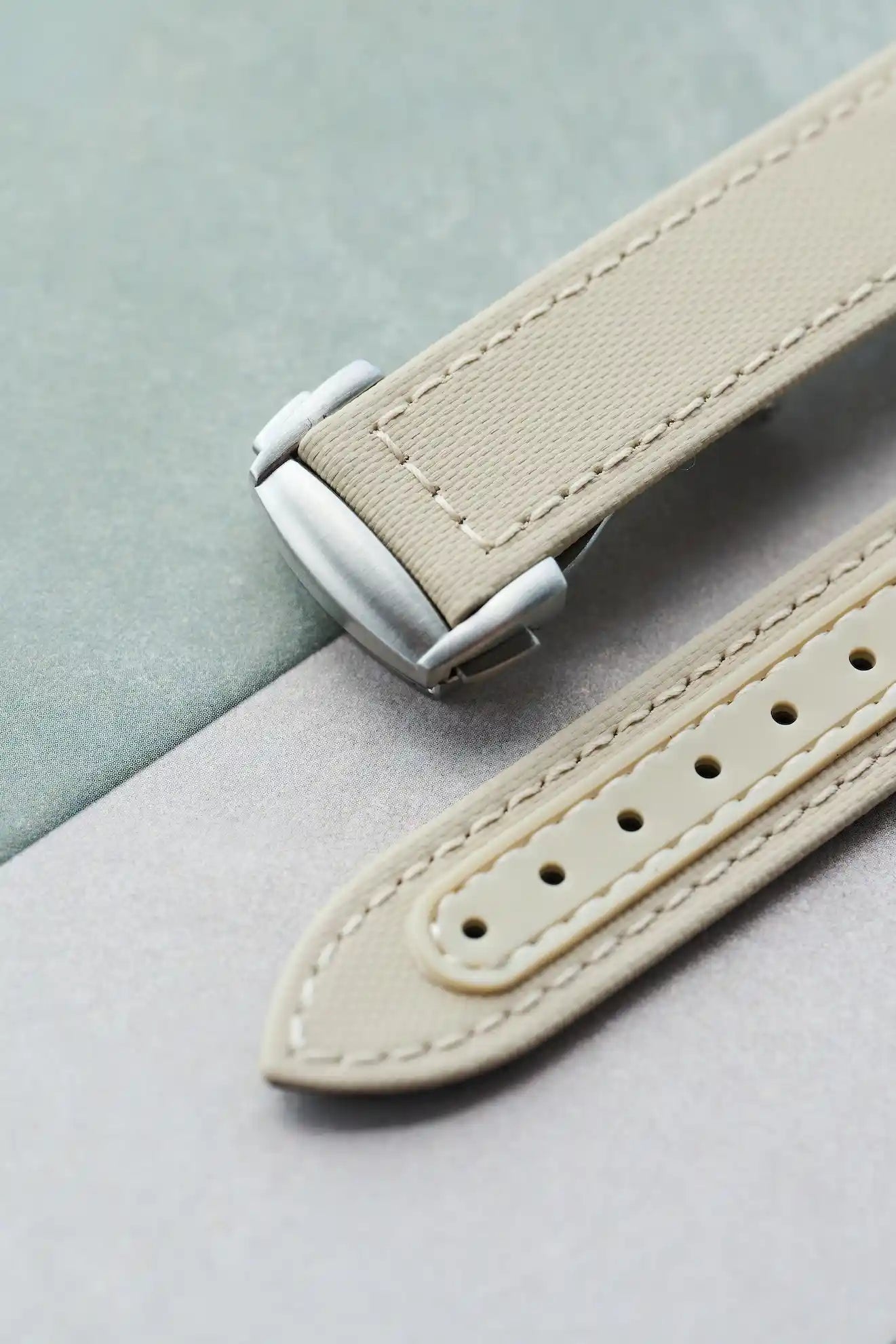 Omega-Style Deployant Sailcloth Watch Strap - Sandstone