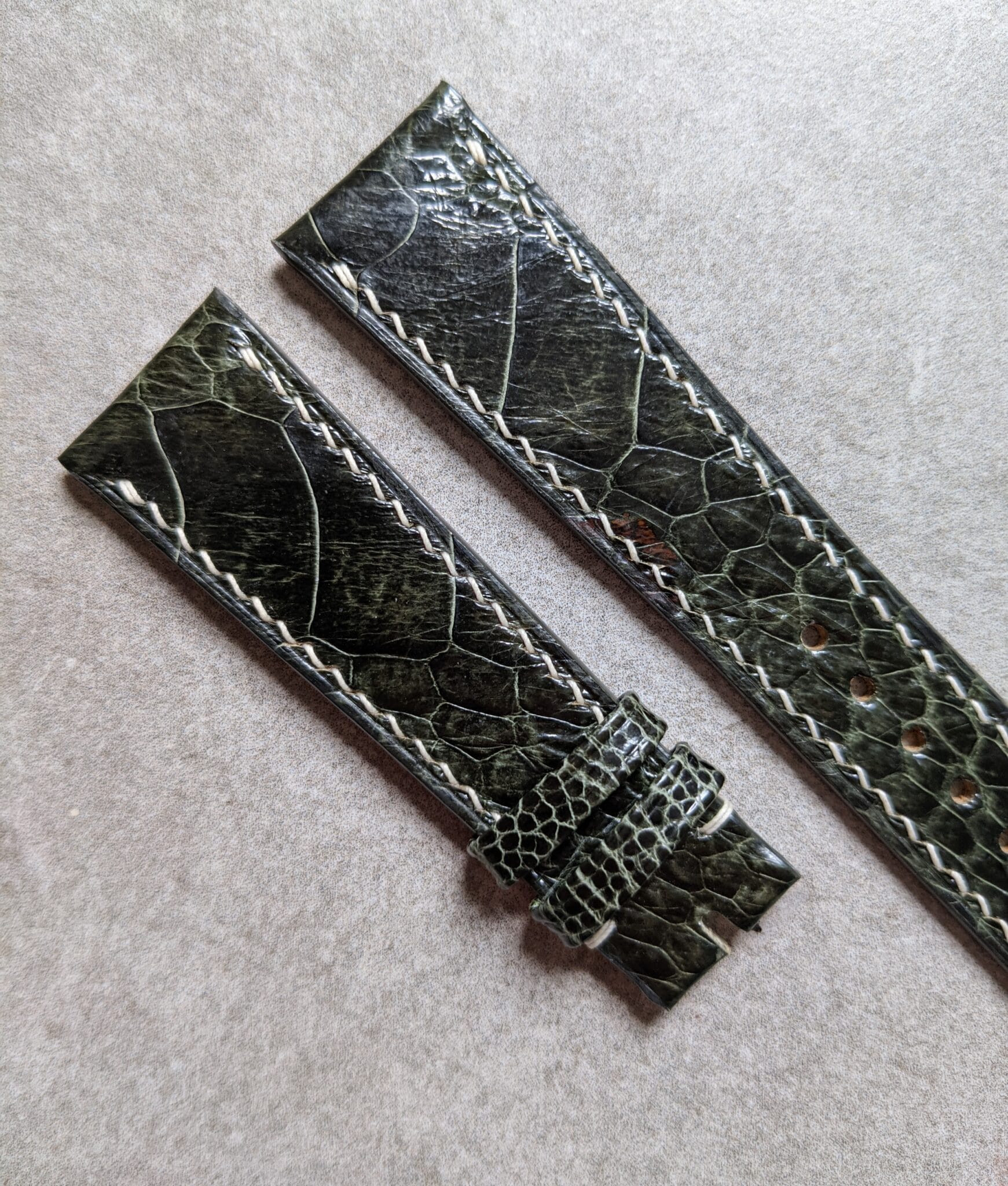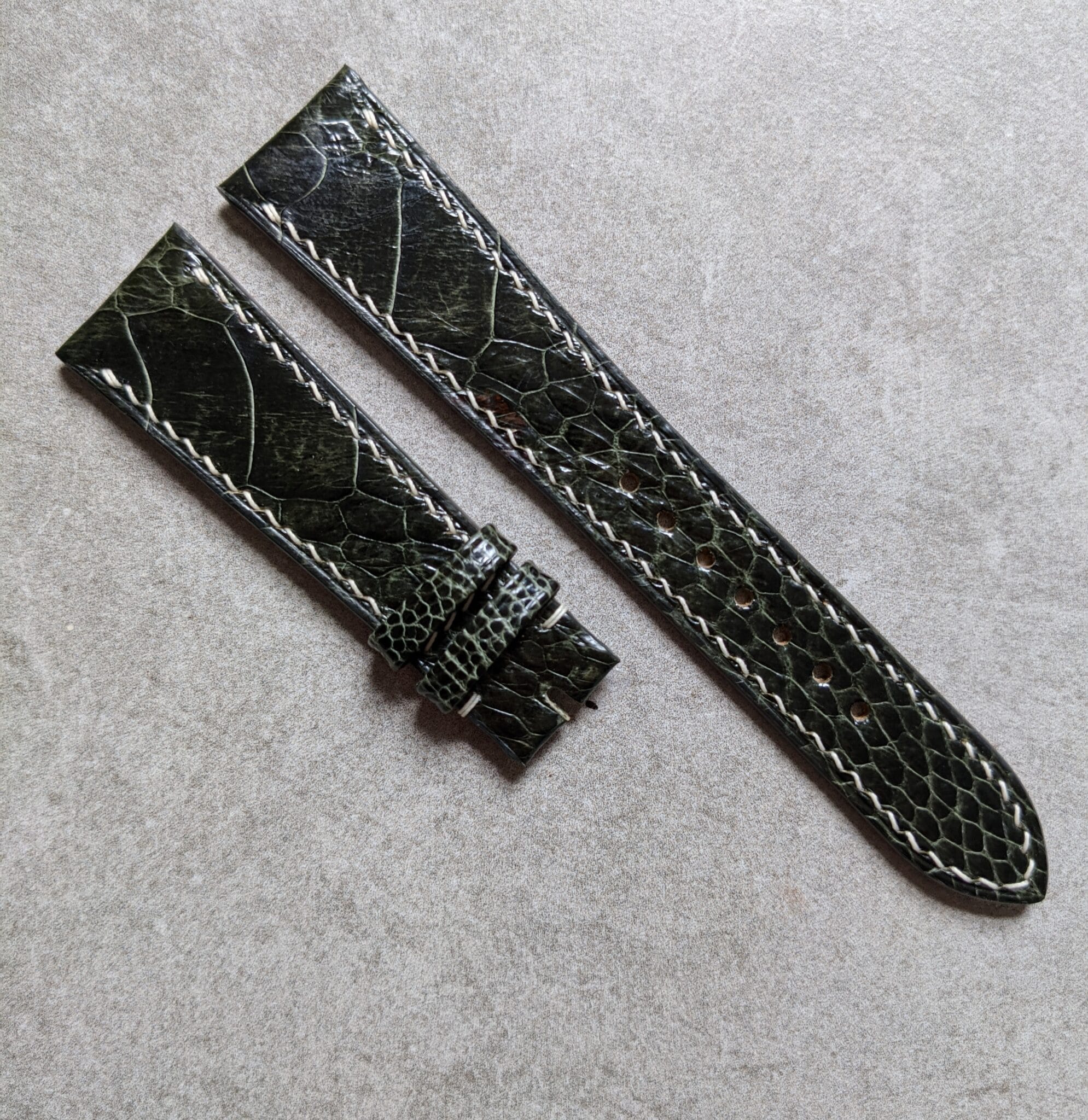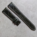 Ostrich Shin Watch Strap - Myrtle Olive W/Cream Stitching
