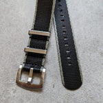 Premium Fabric Watch Strap - Black W/Grey Piping