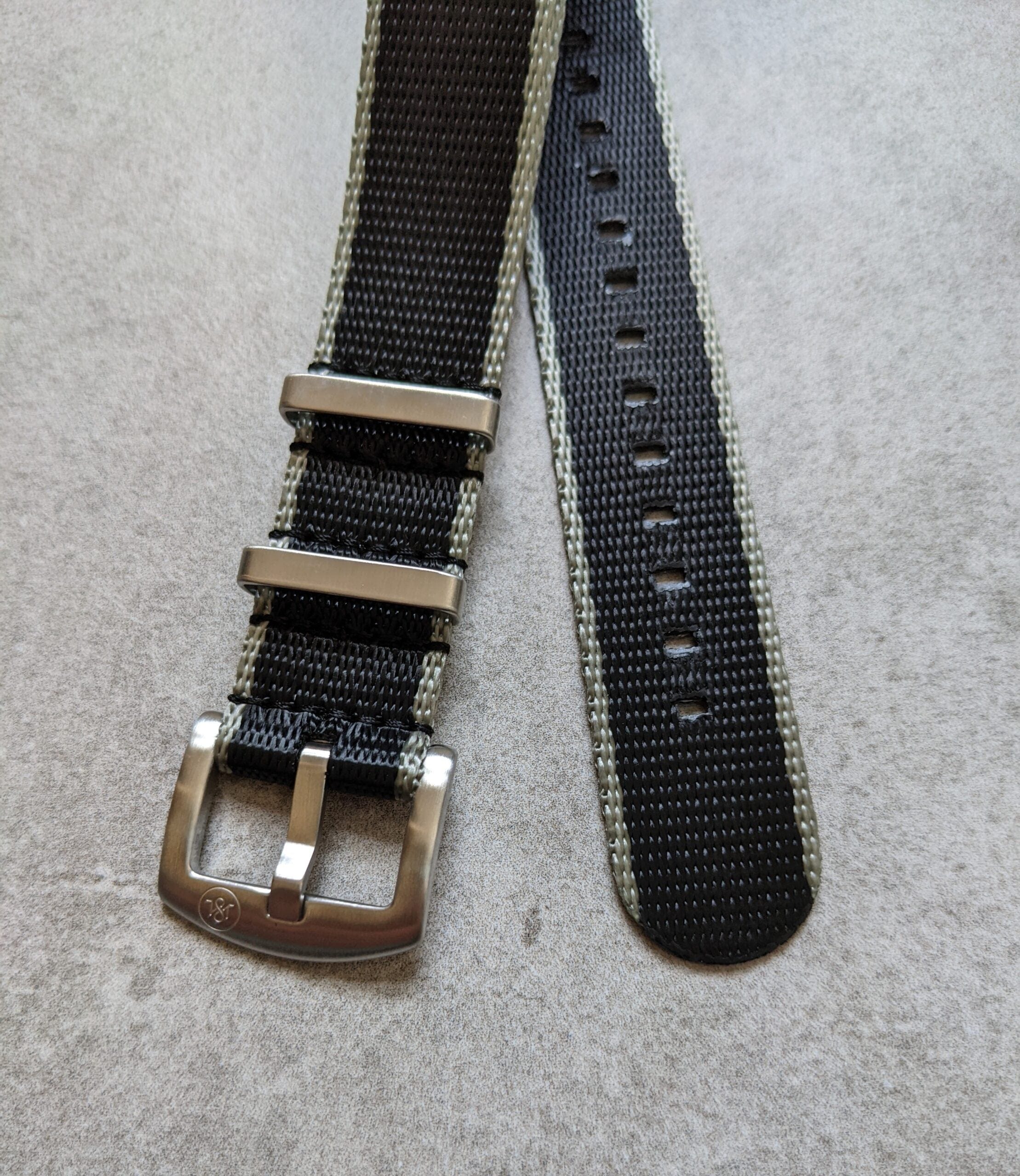 Each of our fabric straps has our branded high quality brushed stainless buckles and keepers. Again, these are the details that seperate low quality fabric straps from ours at The Strap Tailor