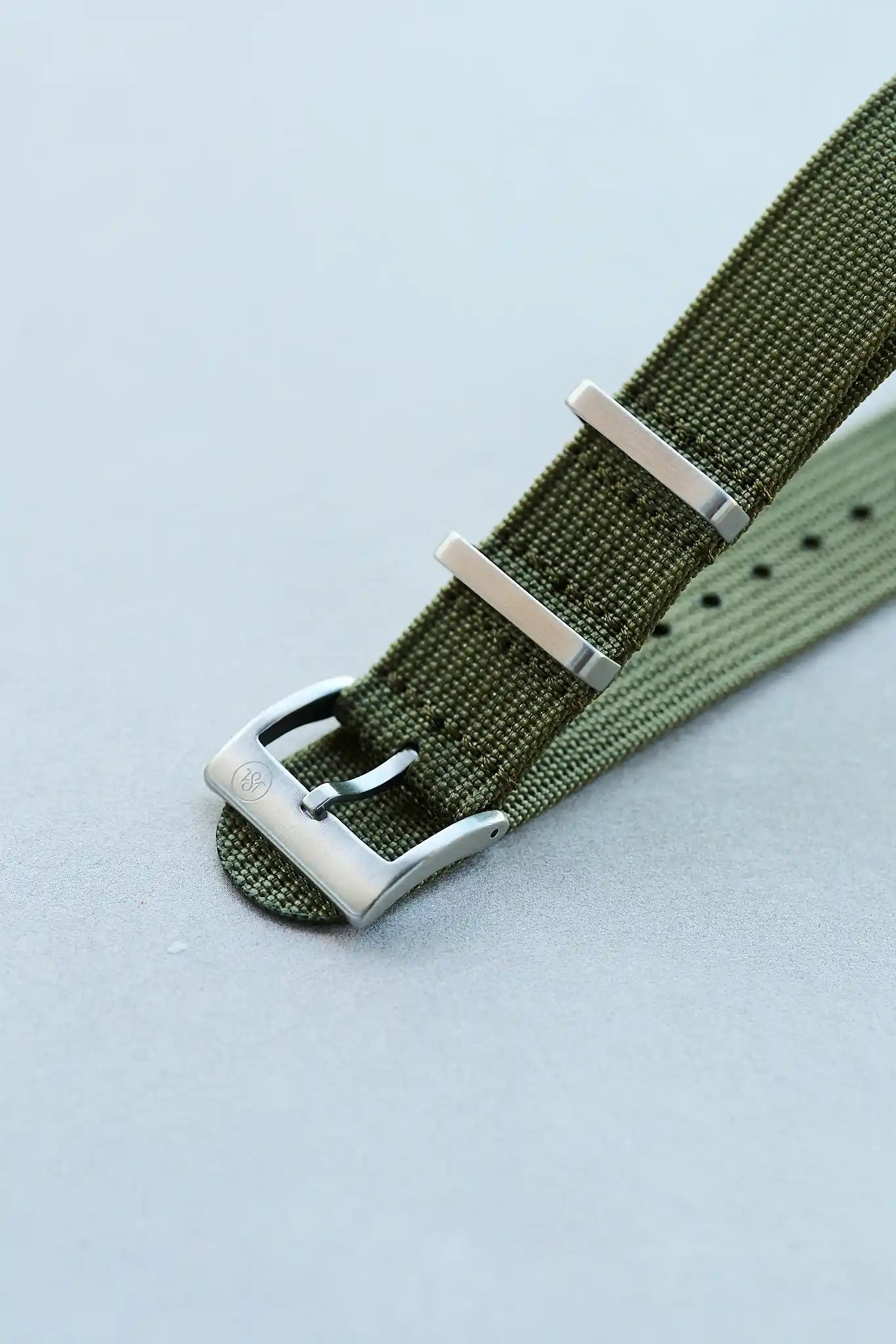 Each of our fabric straps has our branded high quality brushed stainless buckles and keepers. Again, these are the details that seperate low quality fabric straps from ours at The Strap Tailor