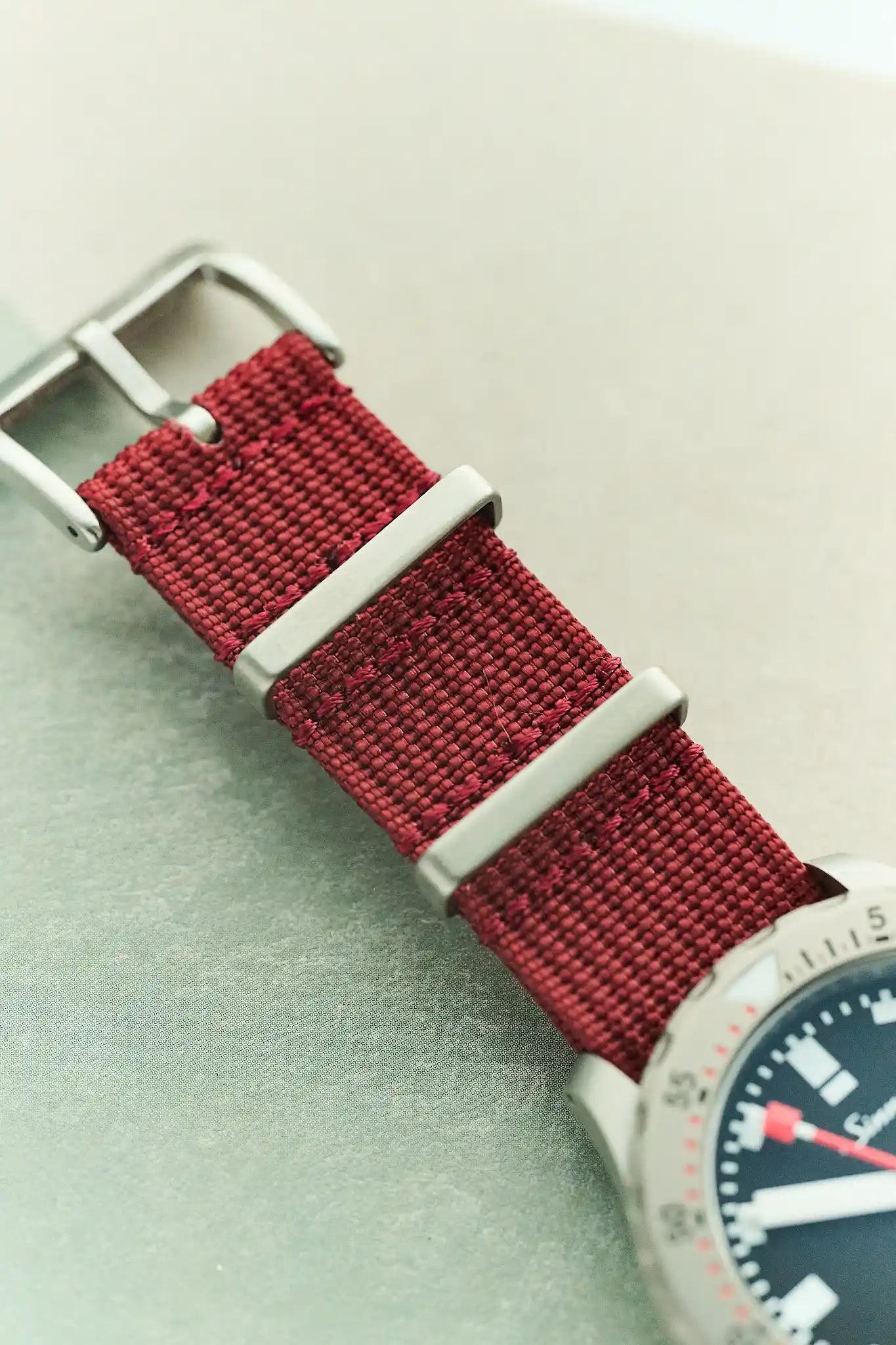 Premium Ribbed Fabric Watch Strap - Burgundy