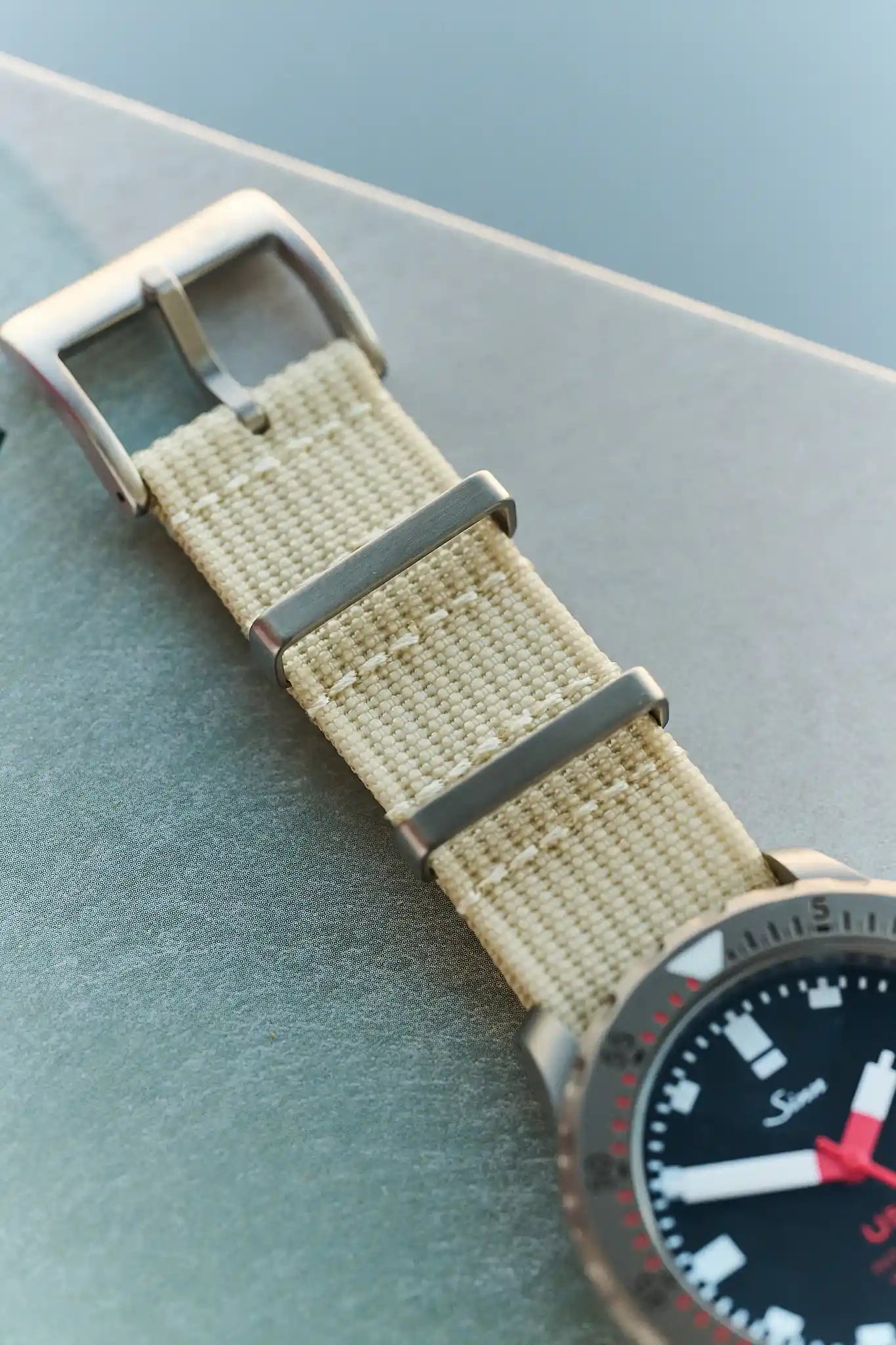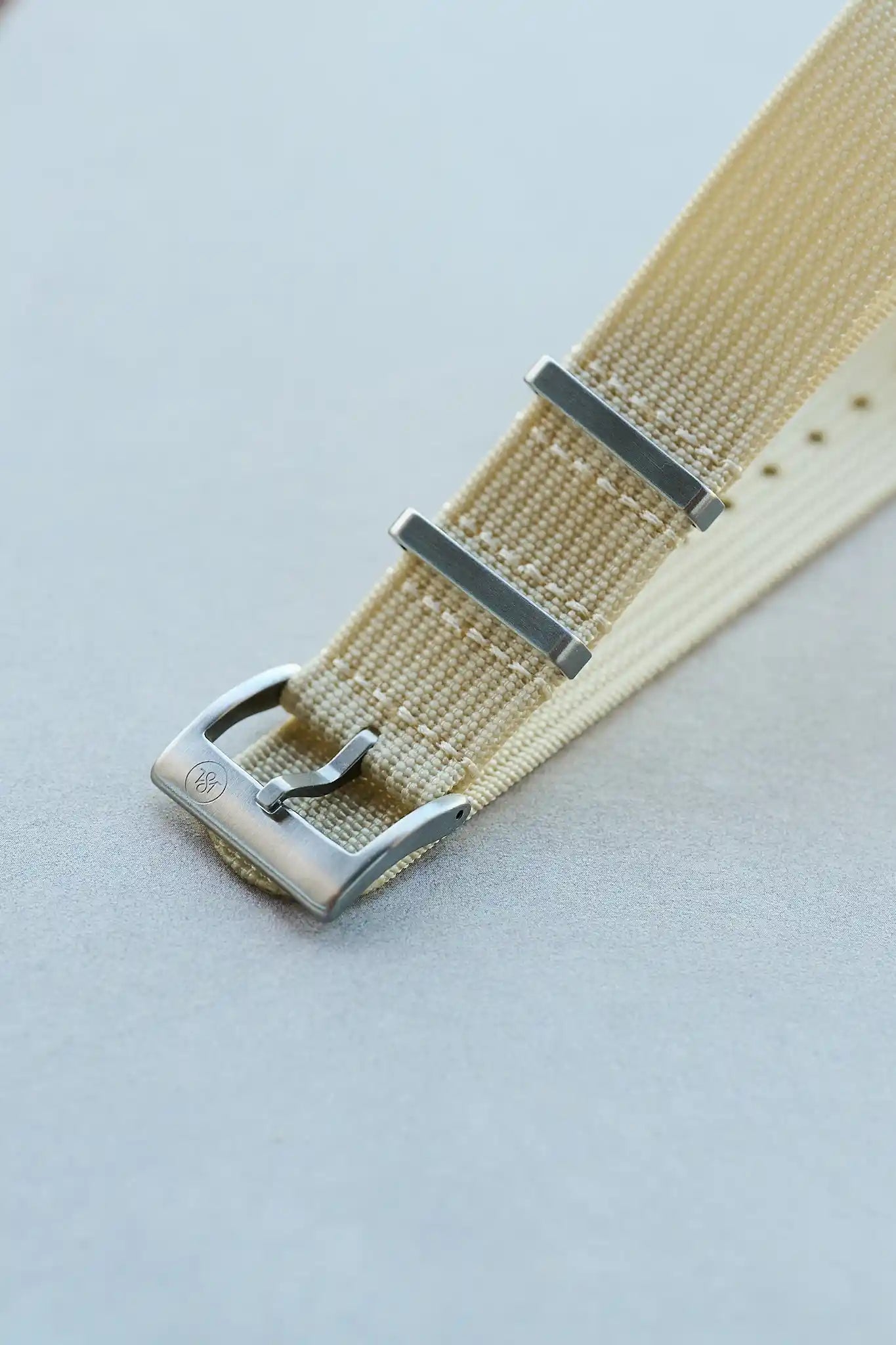Each of our fabric straps has our branded high quality brushed stainless buckles and keepers. Again, these are the details that seperate low quality fabric straps from ours at The Strap Tailor