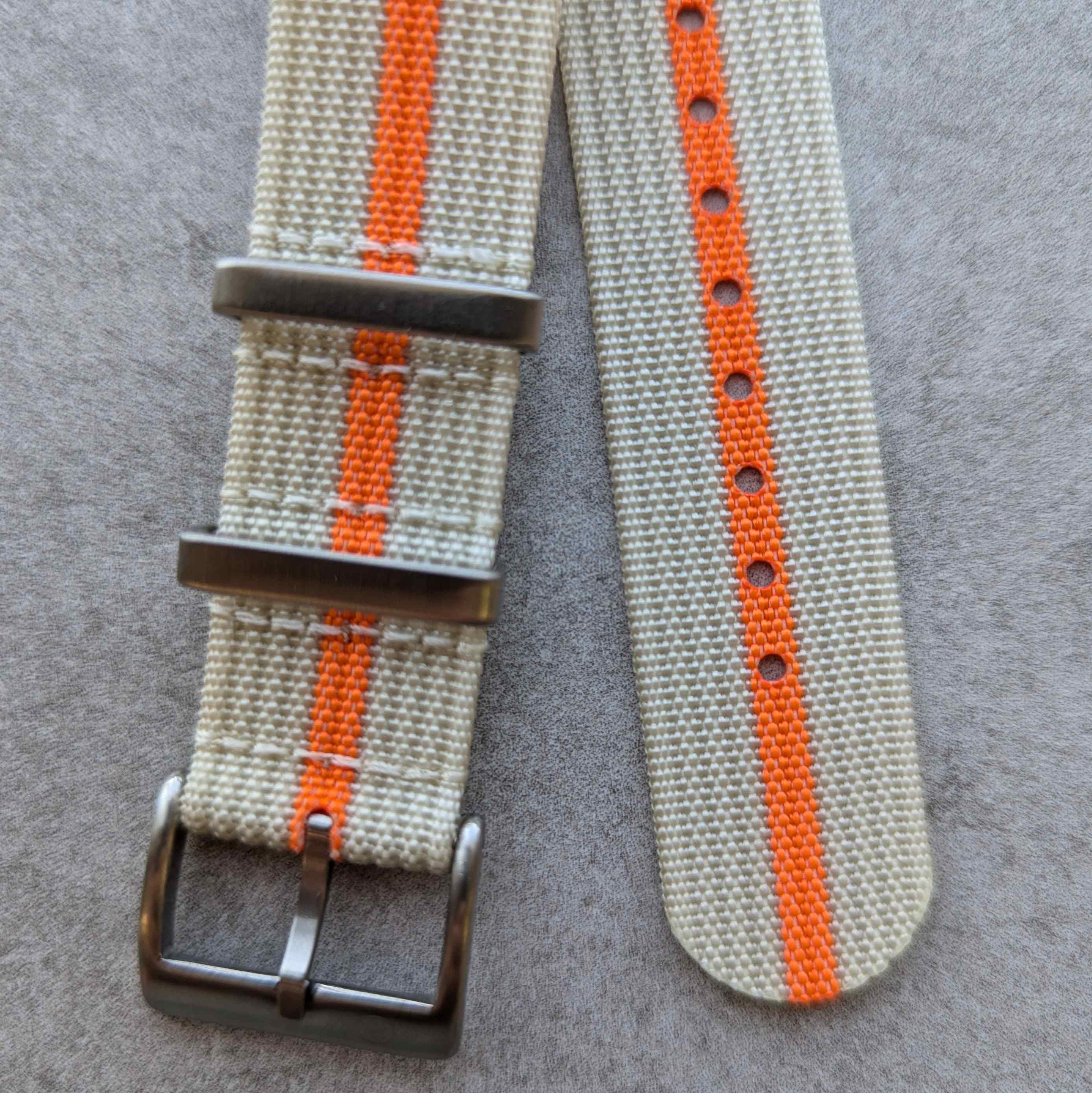 Premium Ribbed Fabric Watch Strap - Cream & Orange