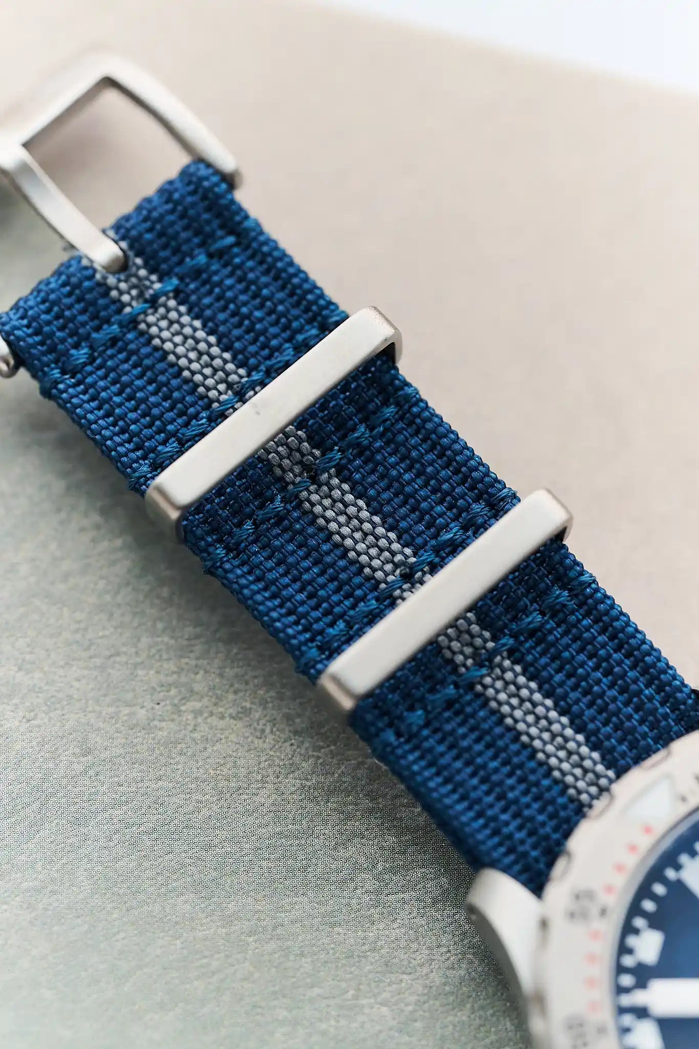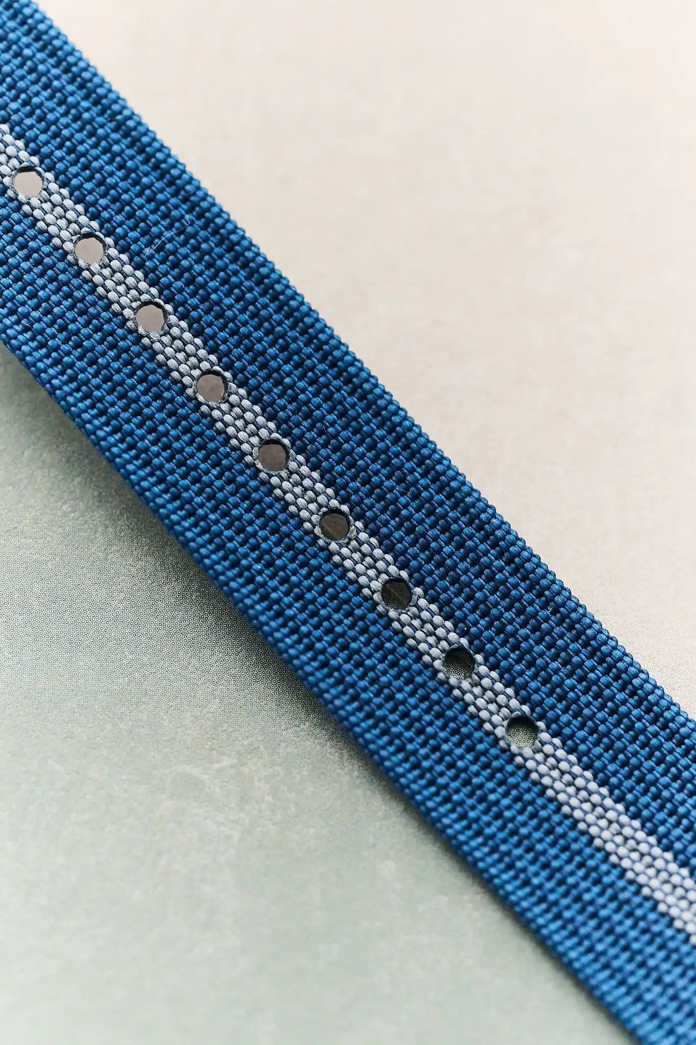 Premium Ribbed Fabric Watch Strap - Navy & Blue Pinstripe