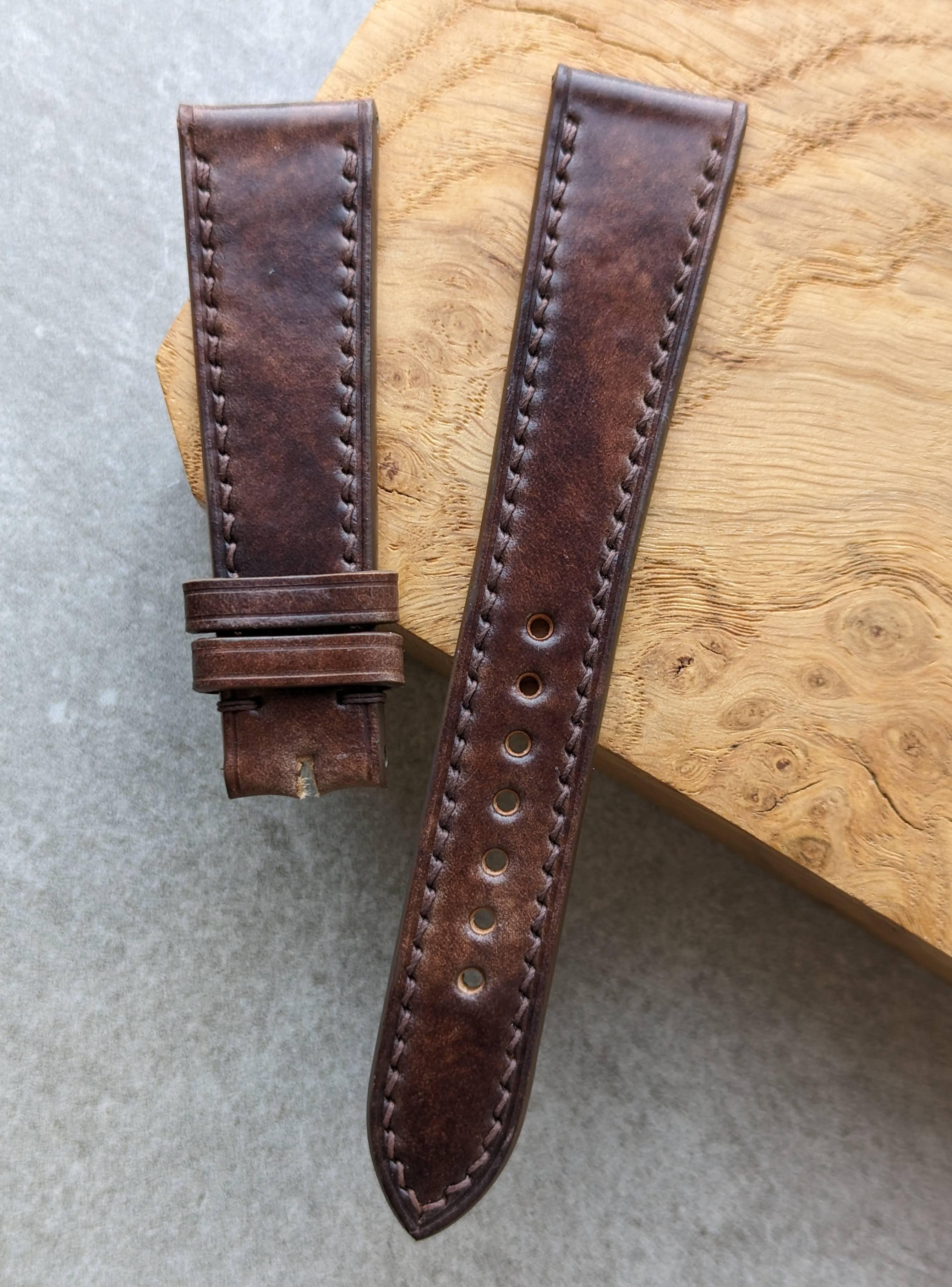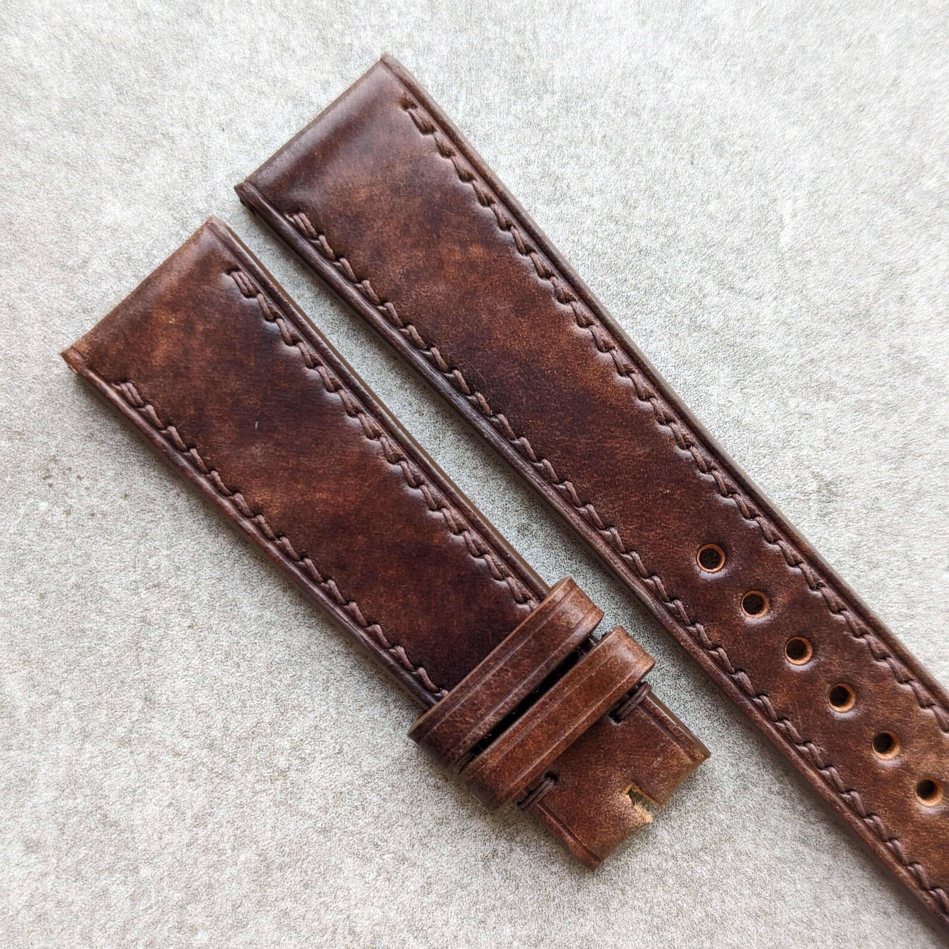 Each leather watch strap is meticulously handmade with traditional techniques and saddle stitched for durability and a visually appealing finish