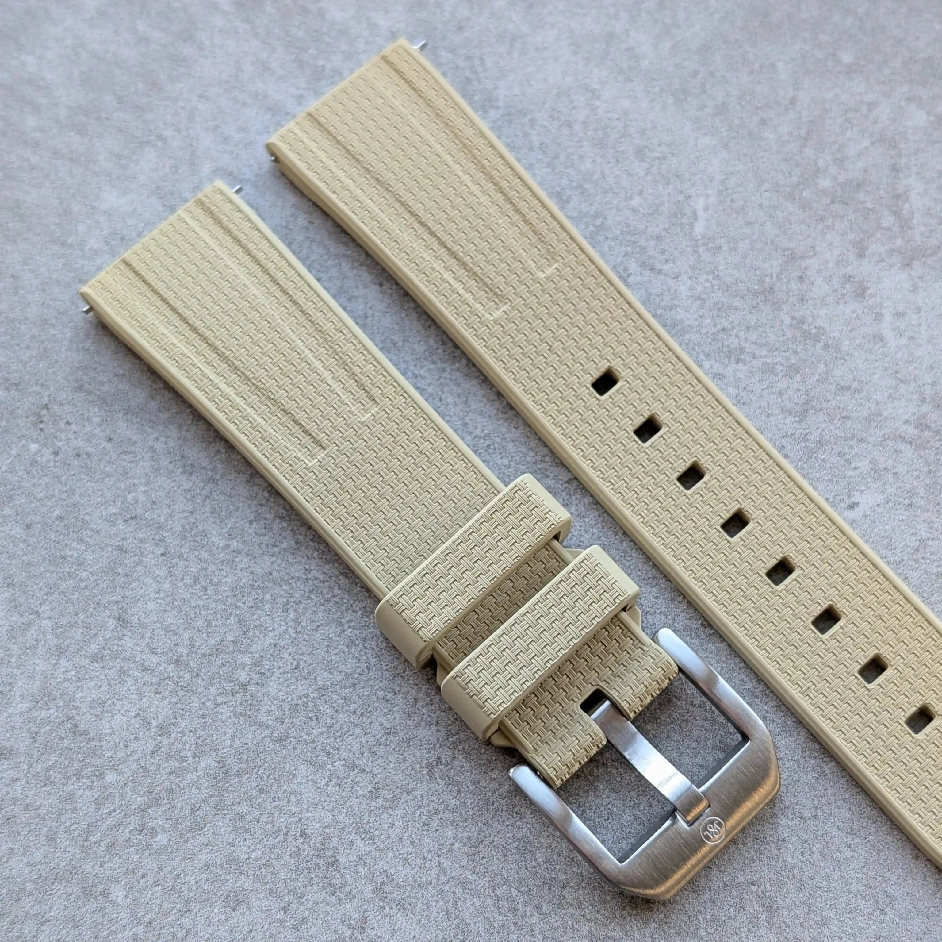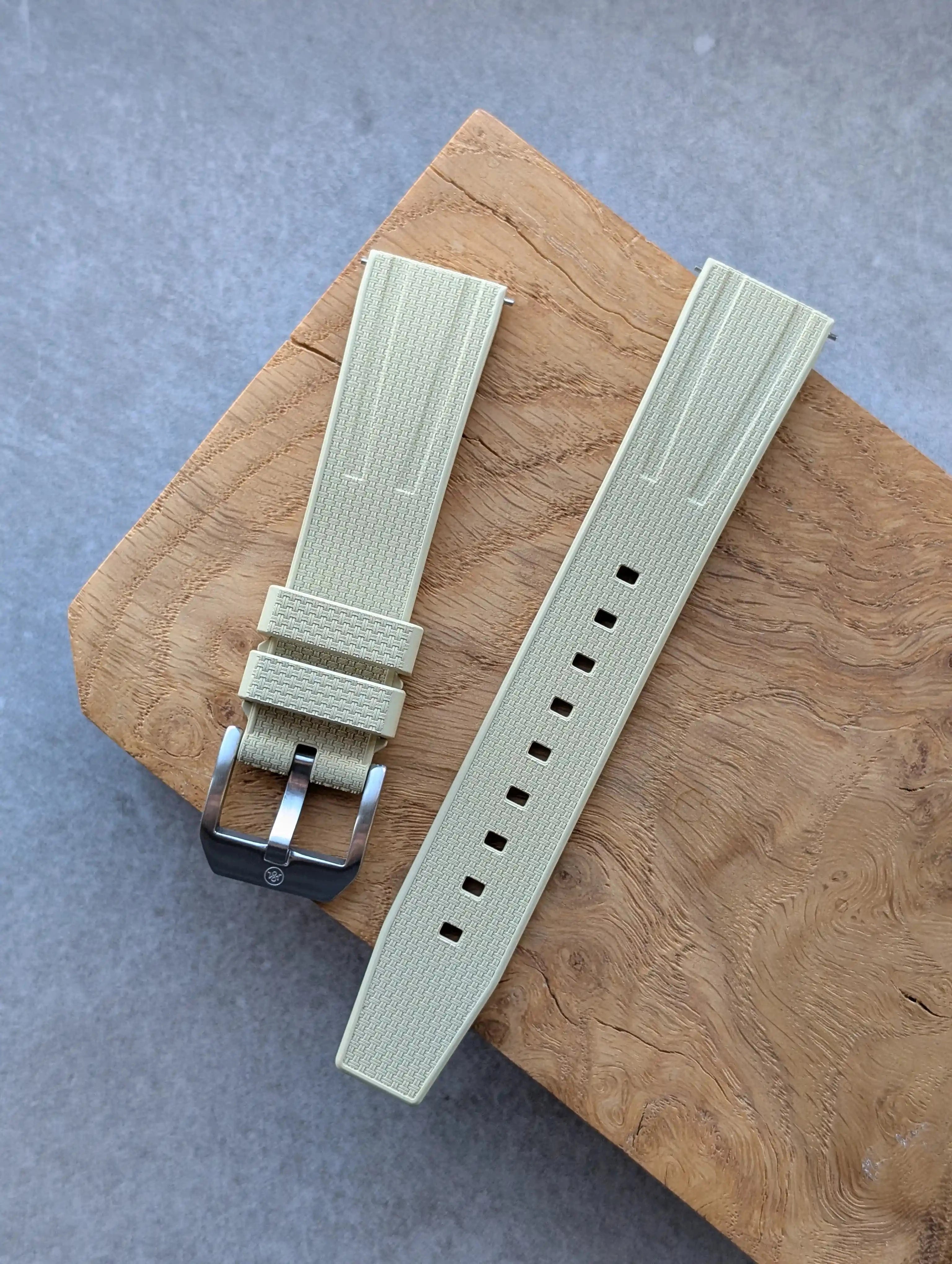 Our FKM rubber watch straps are crafted using only the highest-grade fluoroelastomer compounds, known for their exceptional durability, comfort, and resistance to heat, chemicals, and UV exposure.