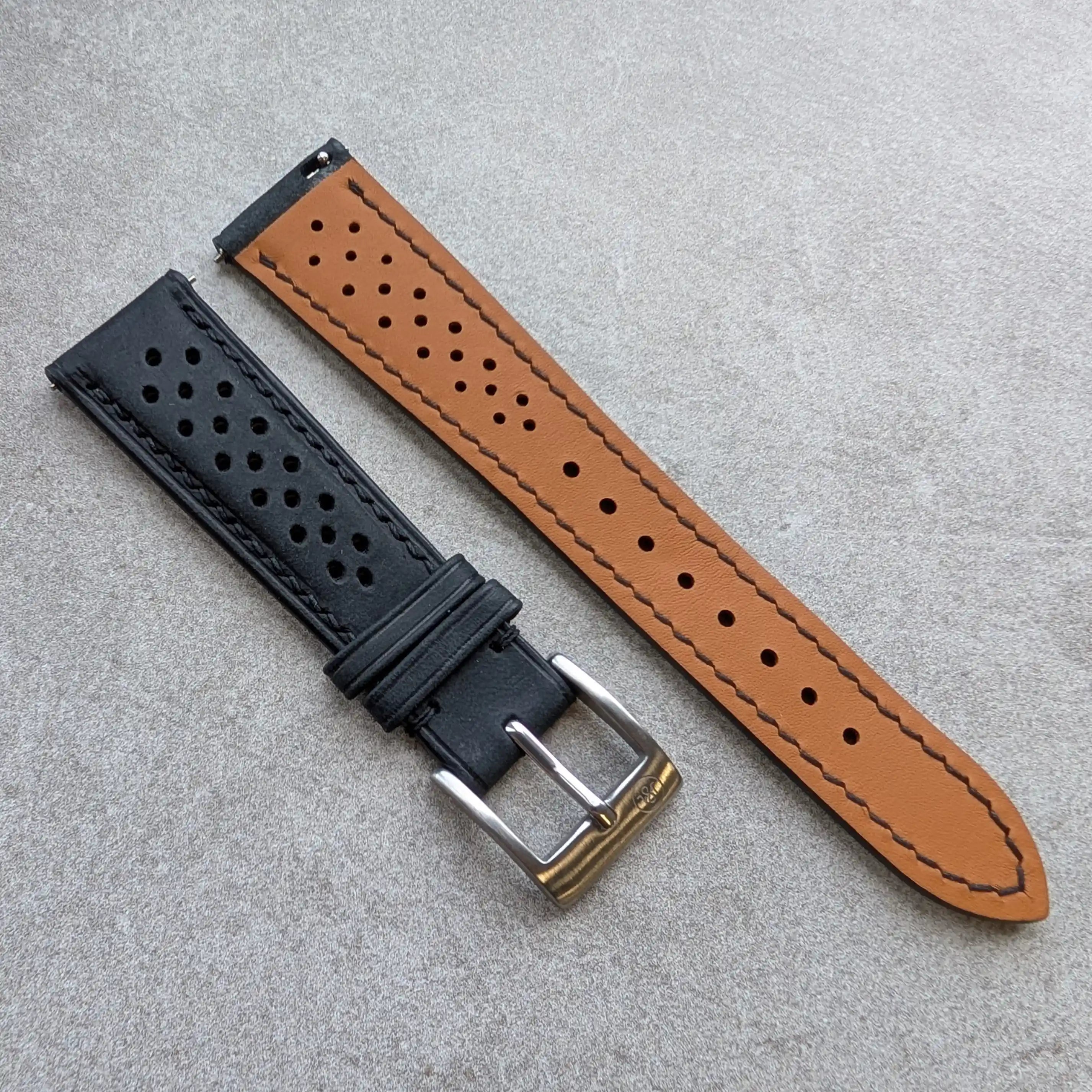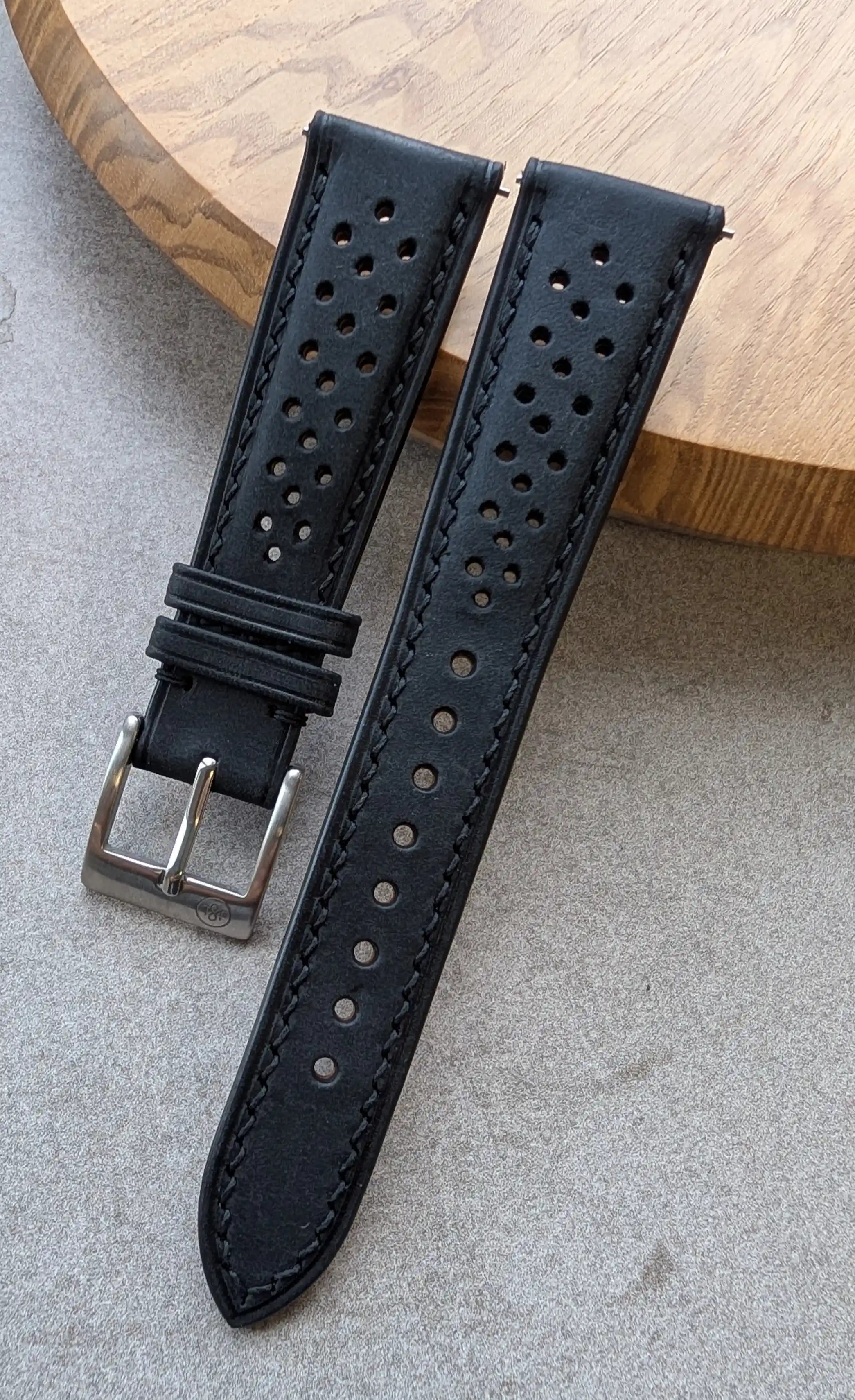 Each leather watch strap is meticulously handmade with traditional techniques and saddle stitched for durability and a visually appealing finish